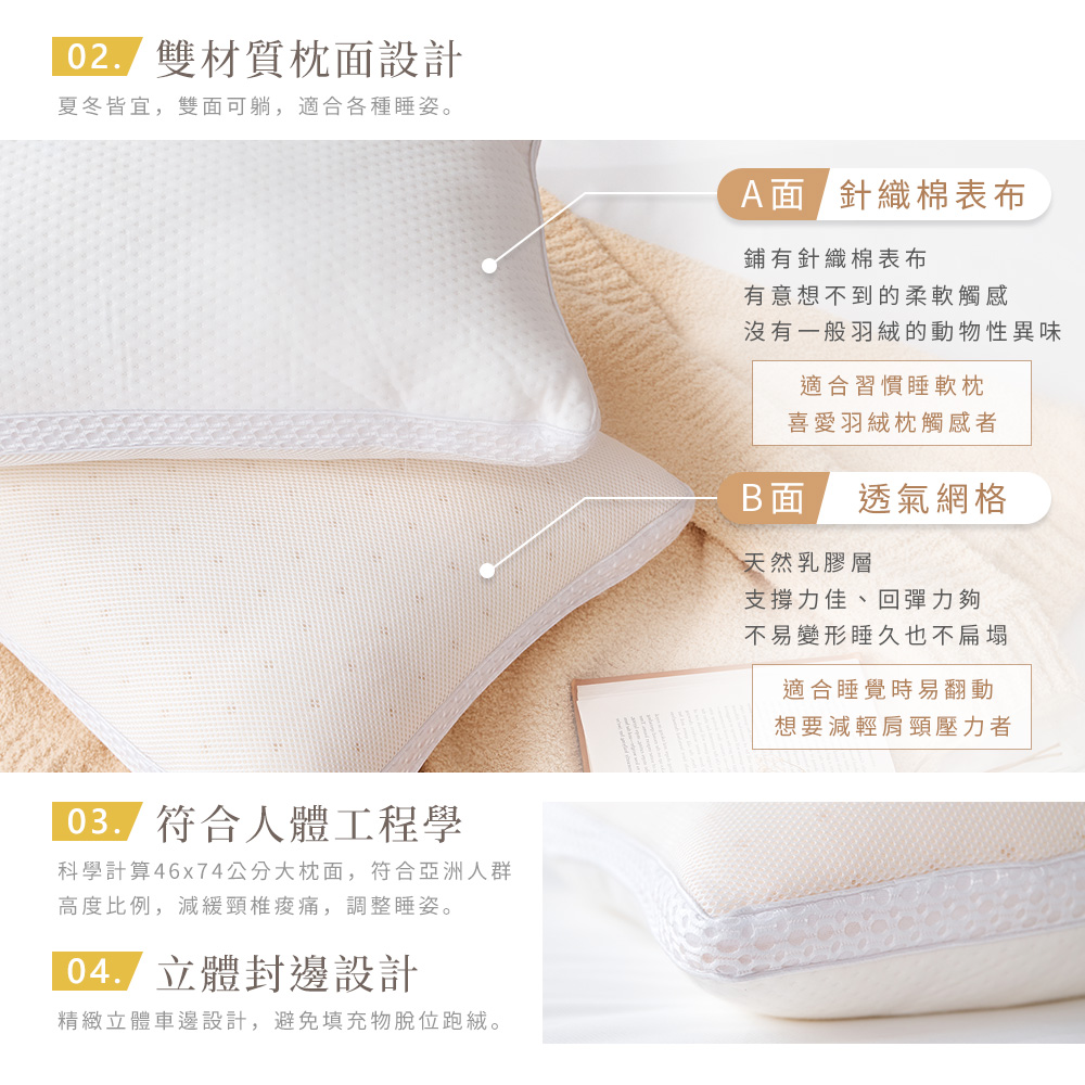 ■國王枕雙材質枕面,夏冬皆宜