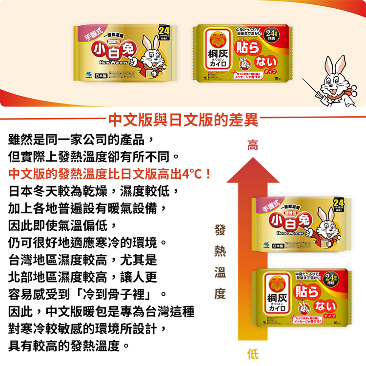 【醫康生活家】小林製藥 小白兔暖暖包(手握式) 24H 10入/包►24包組/箱 (現貨供應)