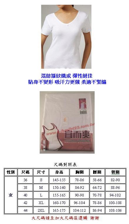 ◇本公司產品均屬原廠全新產品,內衣褲均屬個人衛生貼身物品,一經拆封試穿使用,恕無法退換,如其他原因須退換貨時, 請先與客服中心聯繫TEL:04-23716686 ,退回之商品必須是全新狀態且完整包裝,否則恕不 接受退貨。故此,敬請在選購內衣褲時,根據每樣商品所標示的尺碼, 仔細確認適合您的尺寸。(請參照尺寸對照表)
