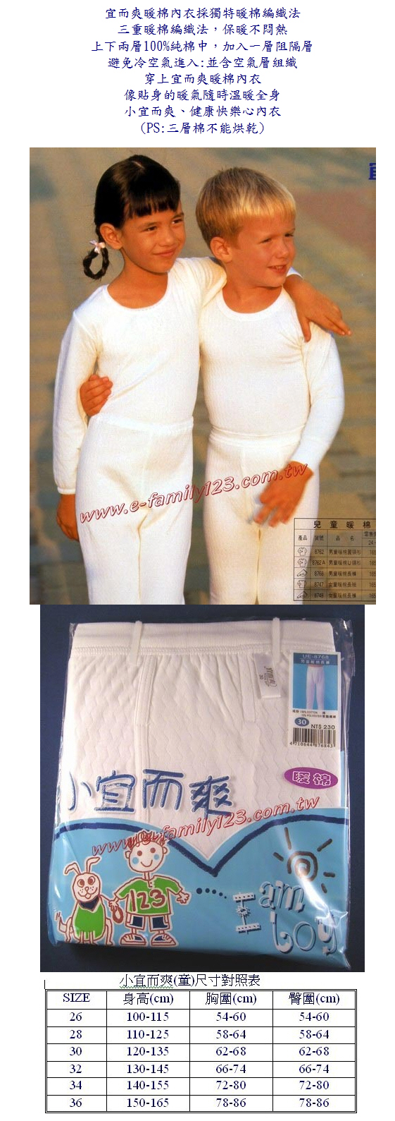 宜而爽男童暖棉長褲UE8768(男中童30)三層棉