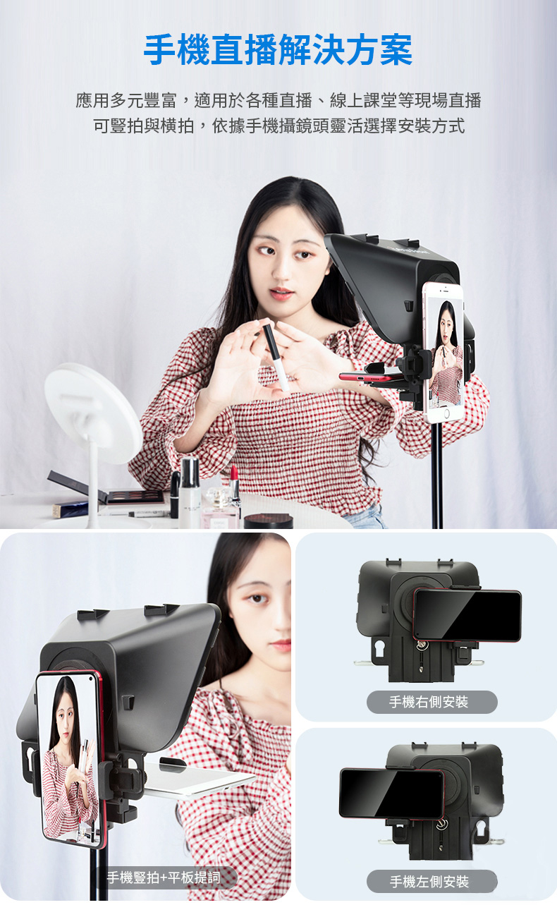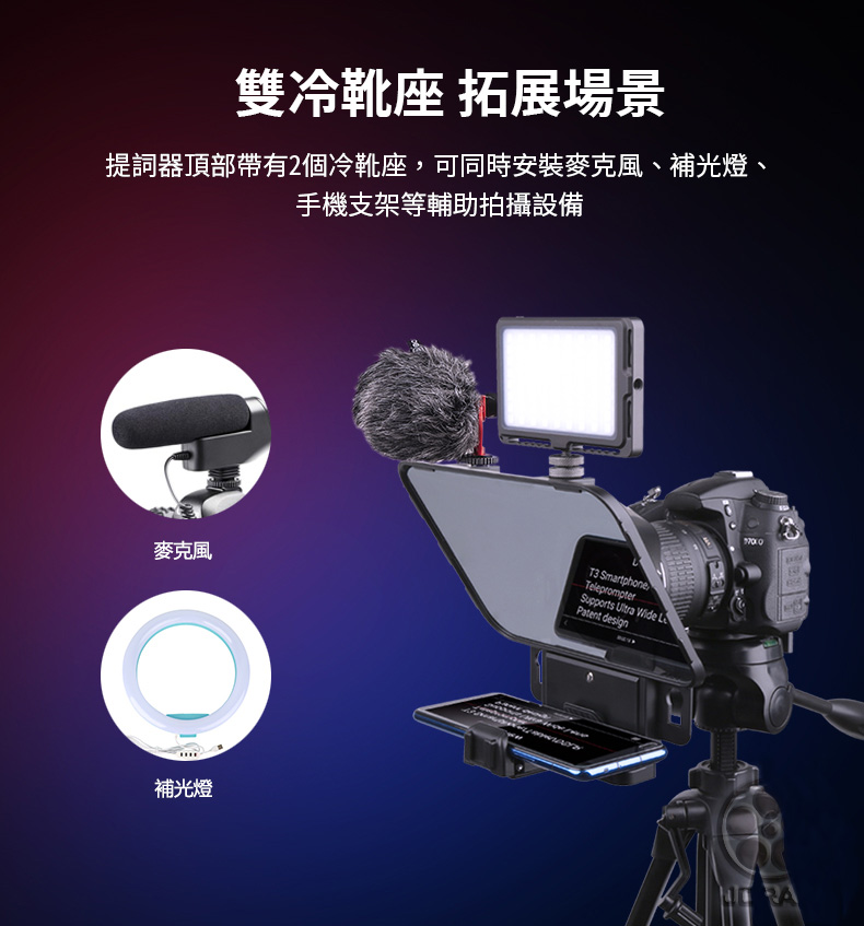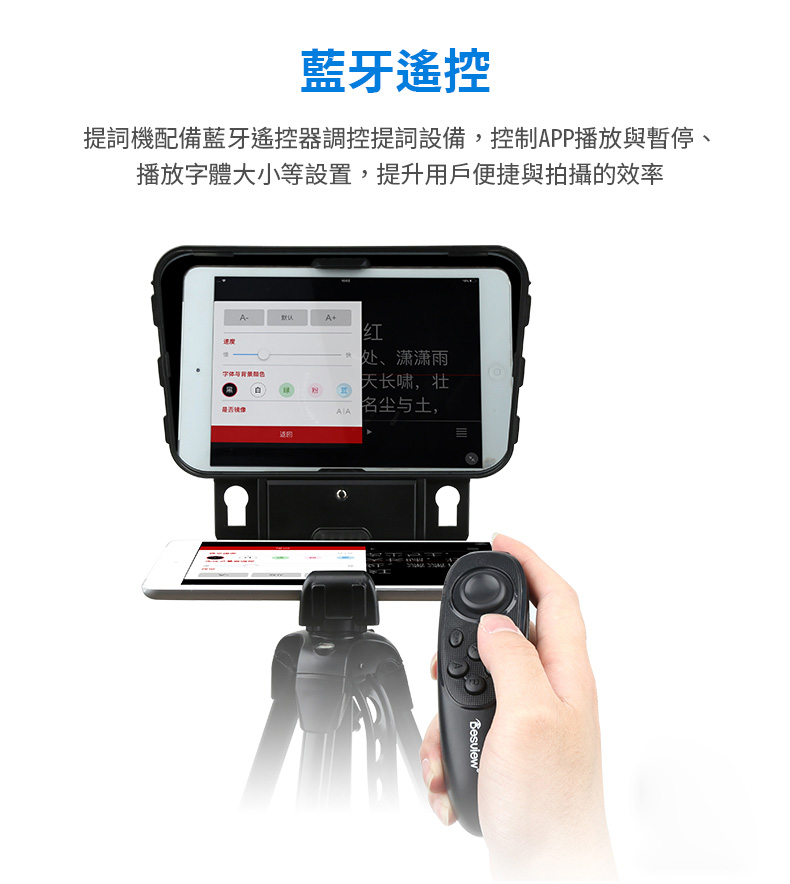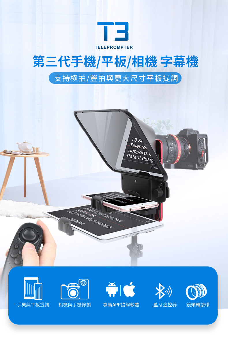 百視悅 Desview T3 提詞機 Broadcast Teleprompter ◆ 專屬APP & 藍芽遙控器配件 ◆ 適用於要求更高的場景 ◆ 升級可放最大 "11吋" 平板 ◆ 廣角清晰提示,97% 高透光率 ◆ 可同時安裝多個輔助拍攝設備