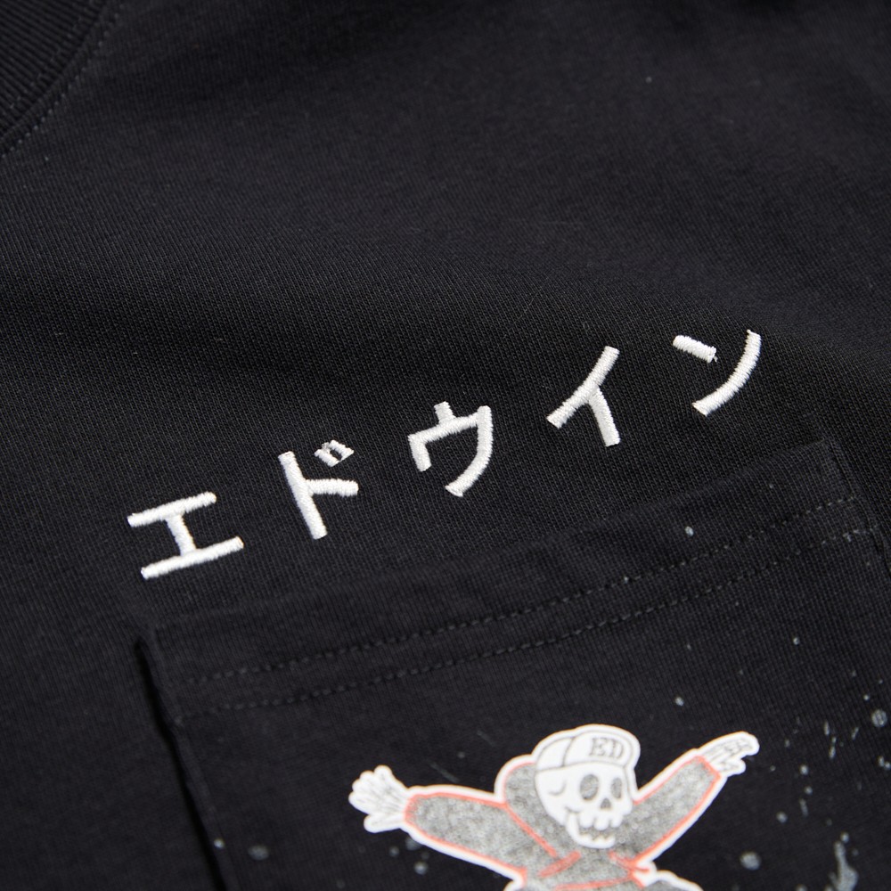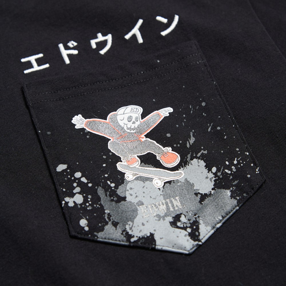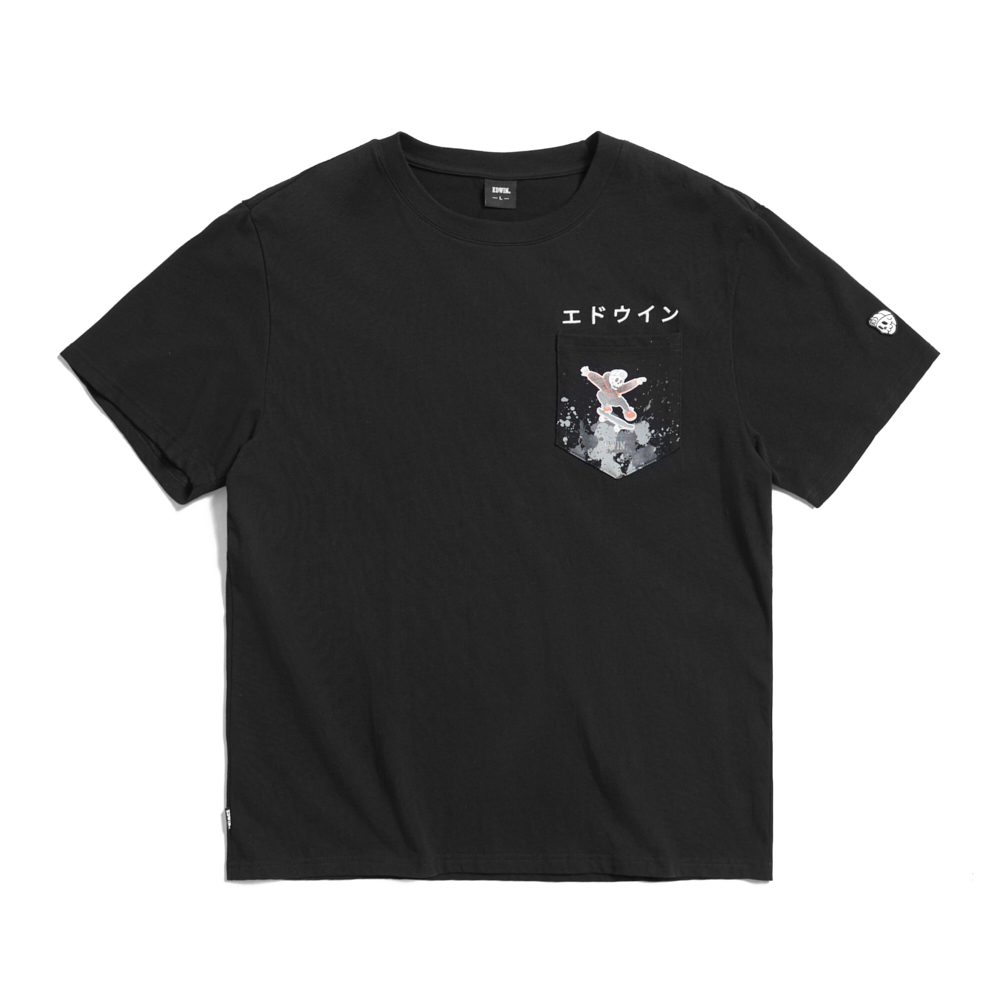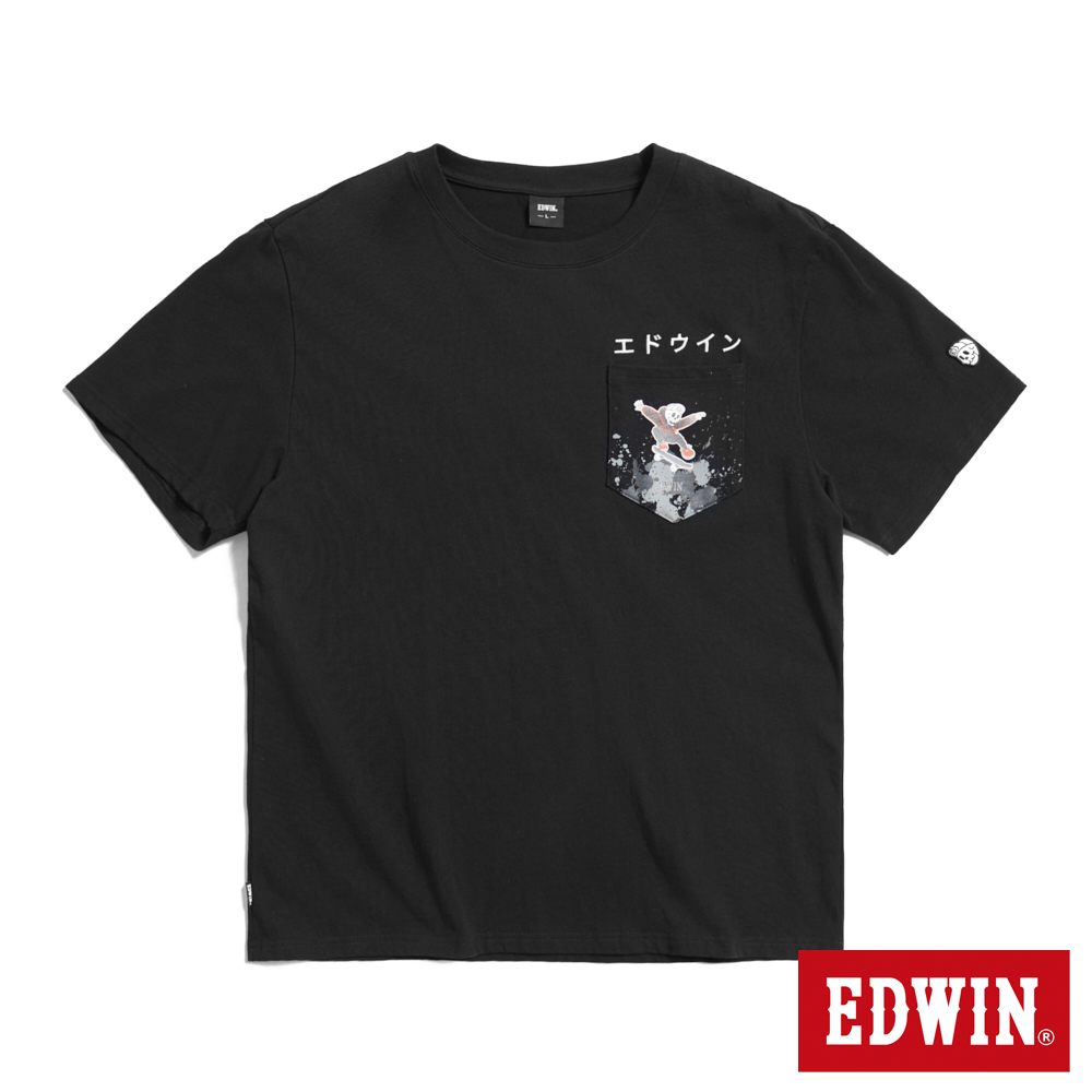 EDWIN 口袋滑板寬版短袖T恤-男款 黑色