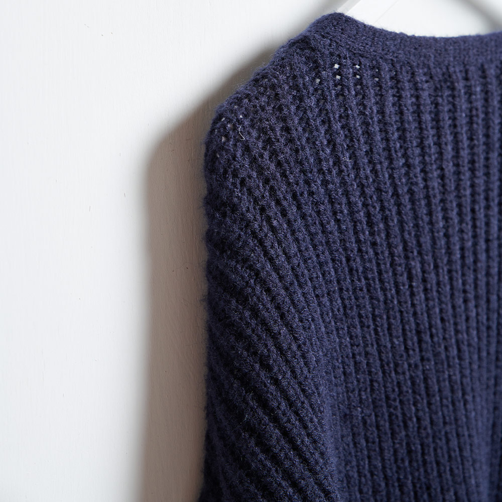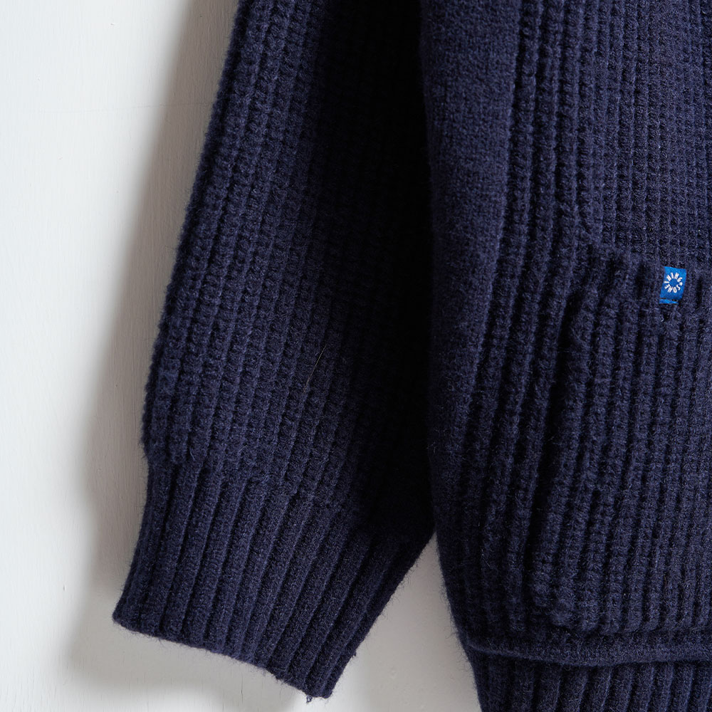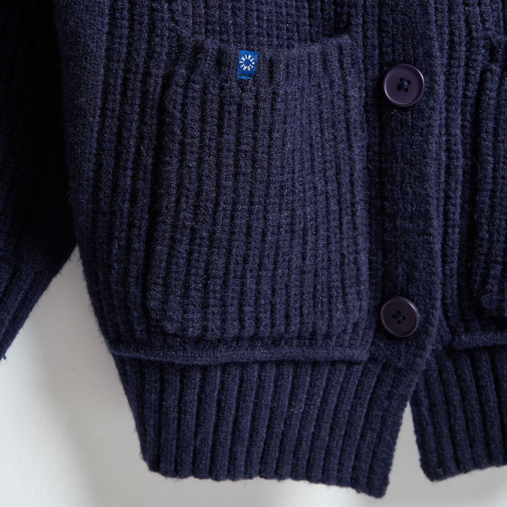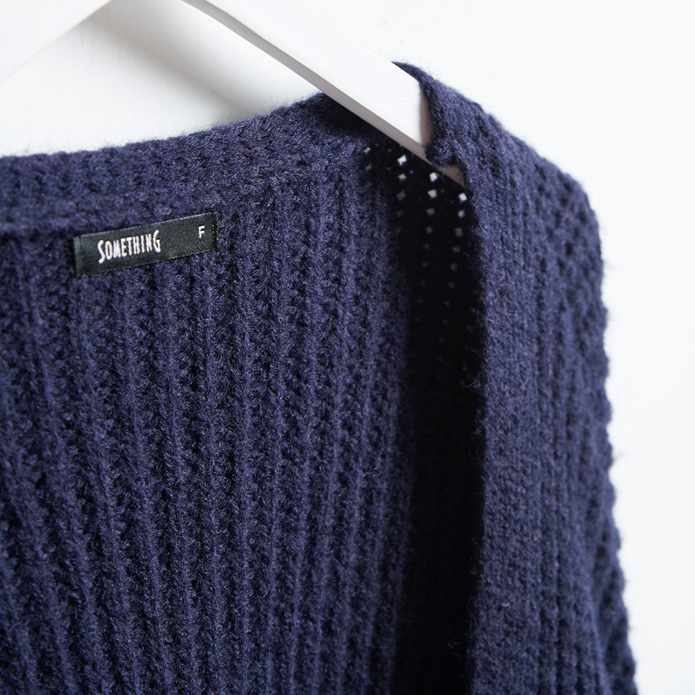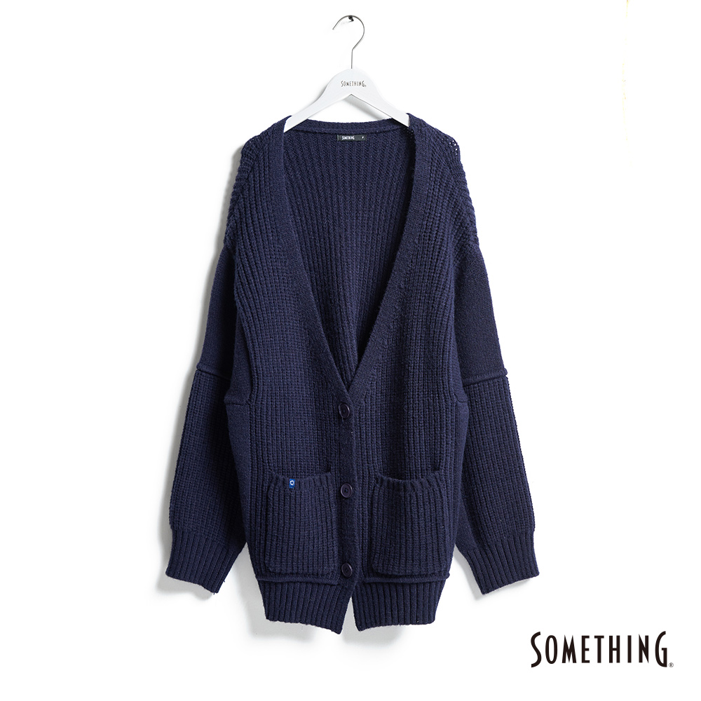 SOMETHING 女款 長版開襟毛衣針織外套 (丈青色)