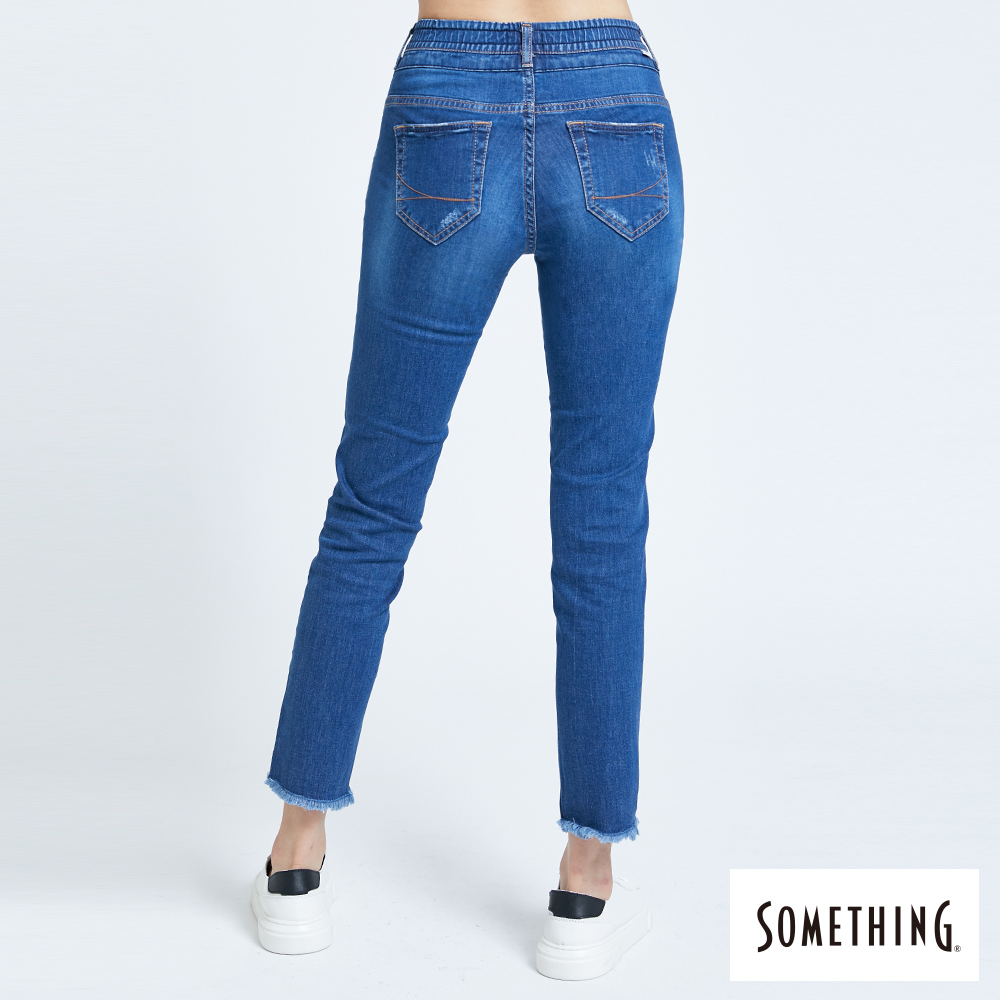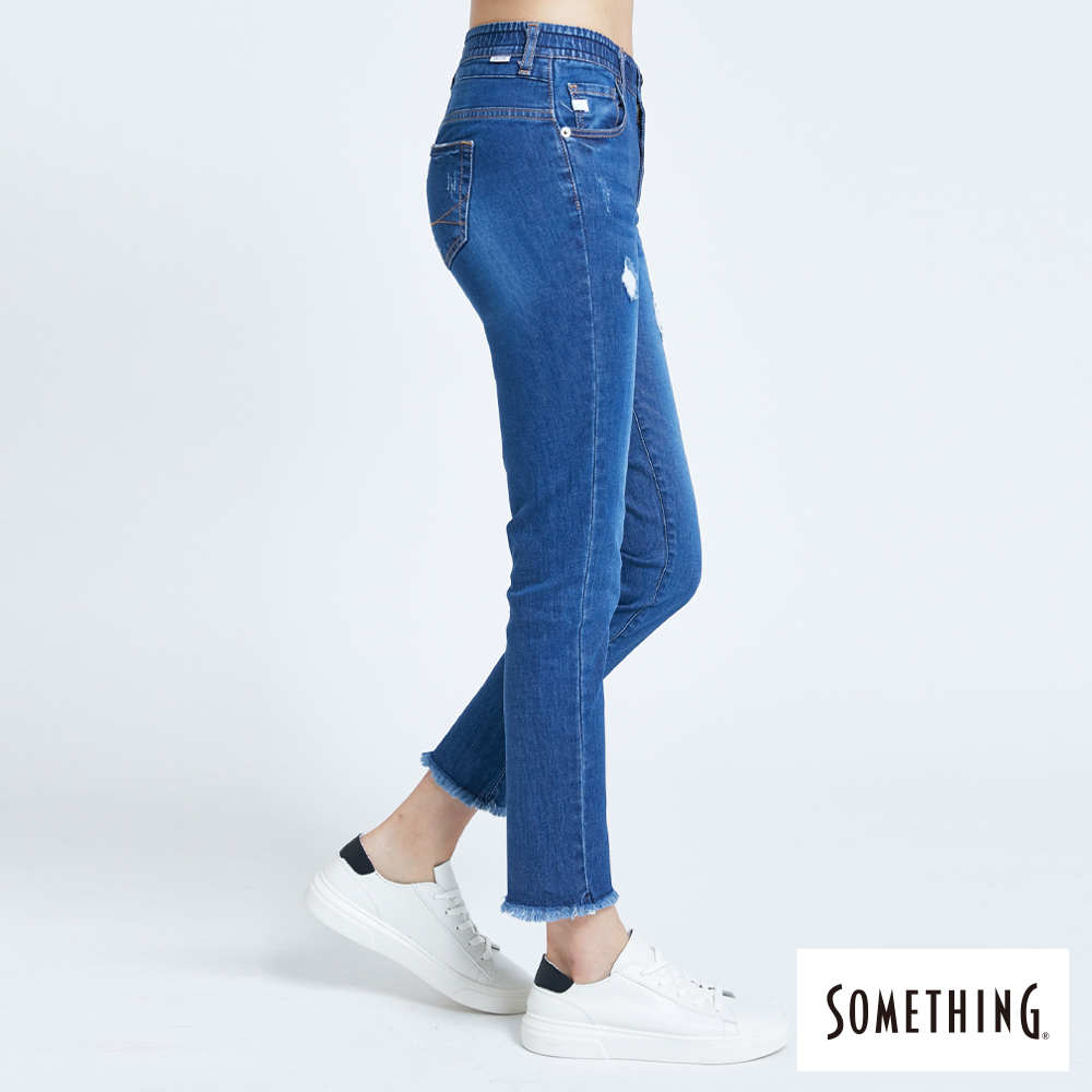 SOMETHING NEO FIT 內腰鬆緊帶九分牛仔褲-女款 中古藍 SLIM