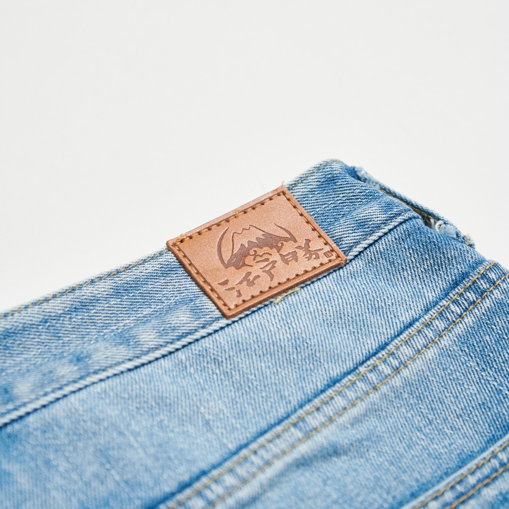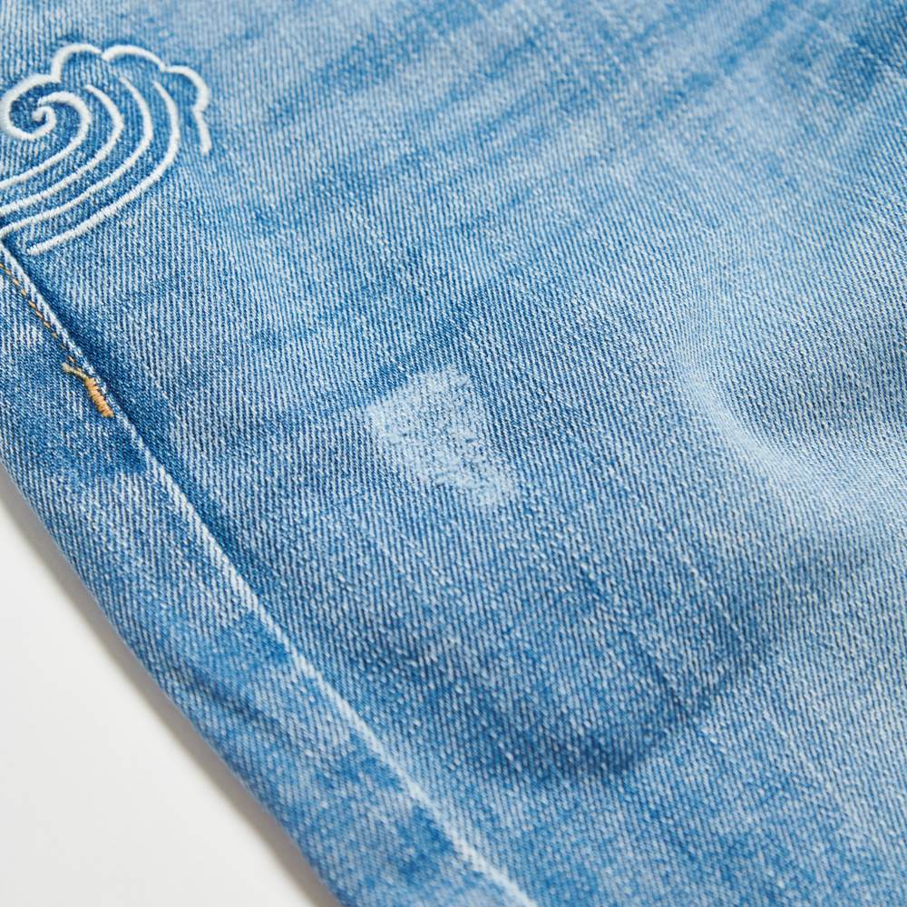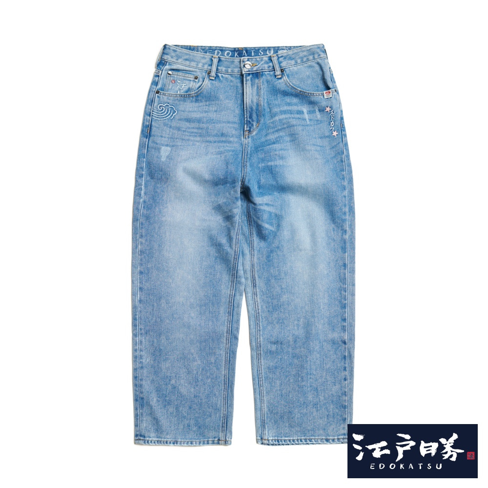 EDOKATSU江戶勝 男款 石洗雪花丹寧直筒褲 (石洗藍)