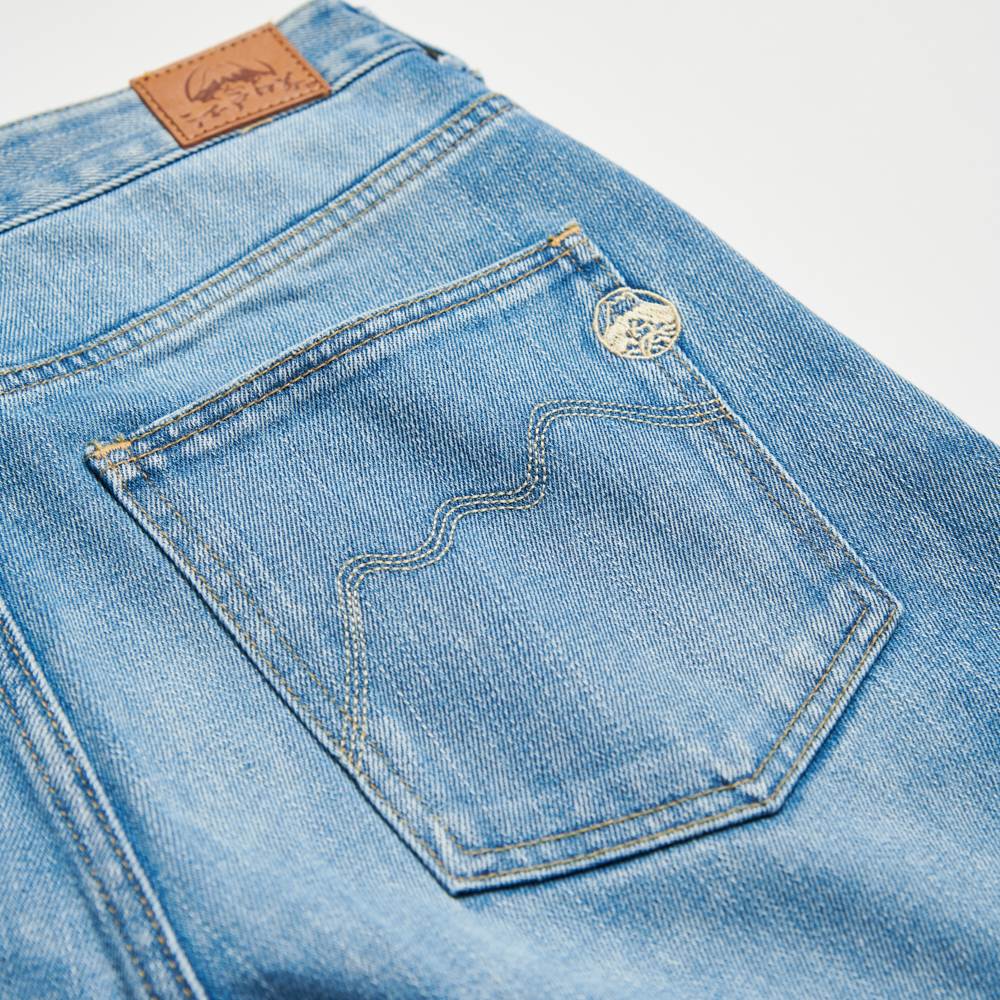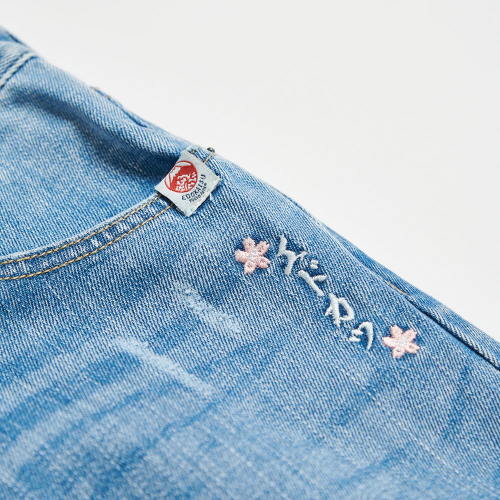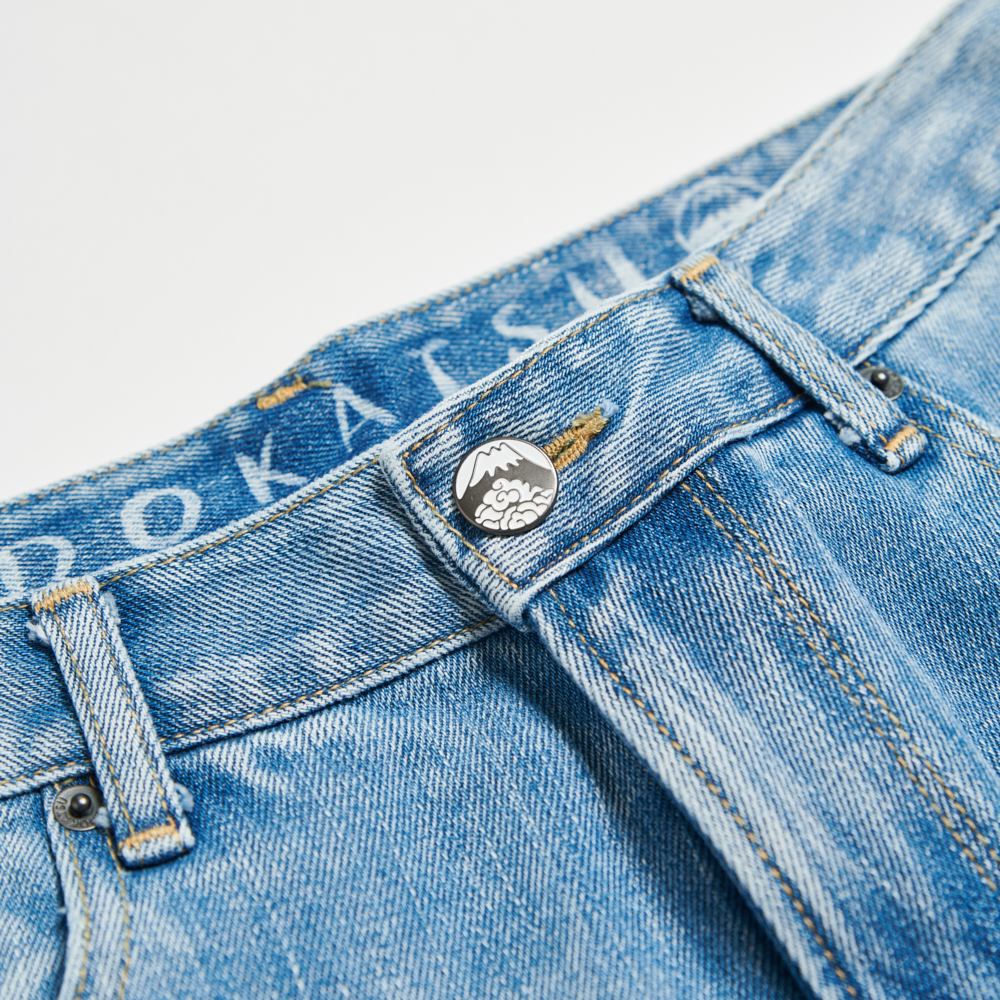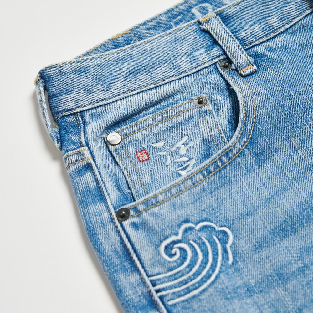 EDOKATSU江戶勝 男款 石洗雪花丹寧直筒褲 (石洗藍)