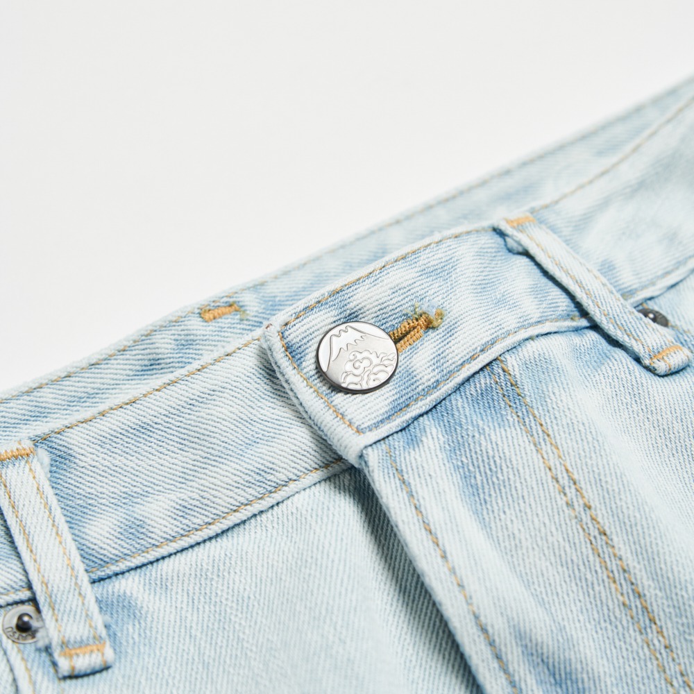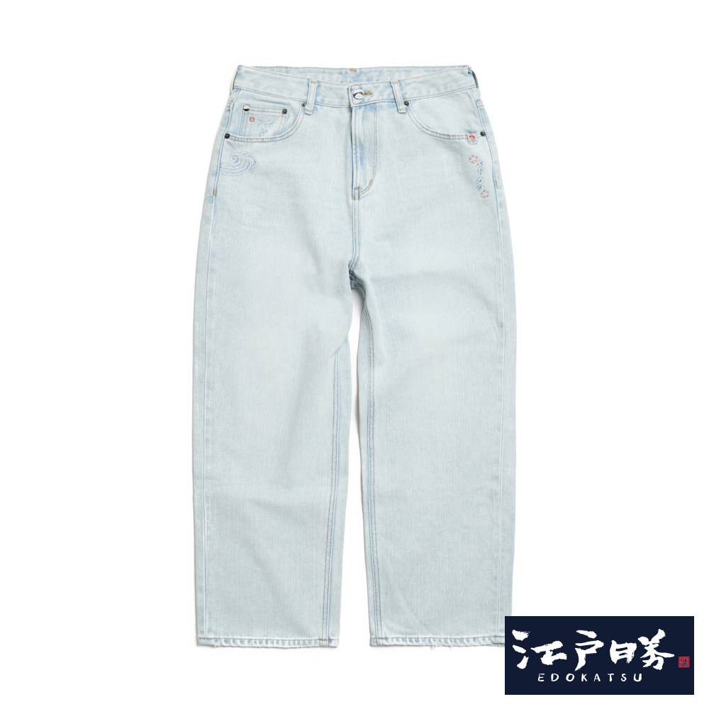 EDOKATSU江戶勝 男款 石洗雪花丹寧直筒褲 (重漂藍)