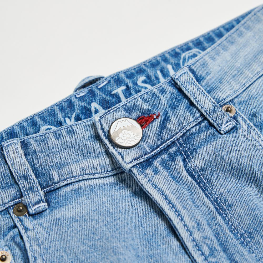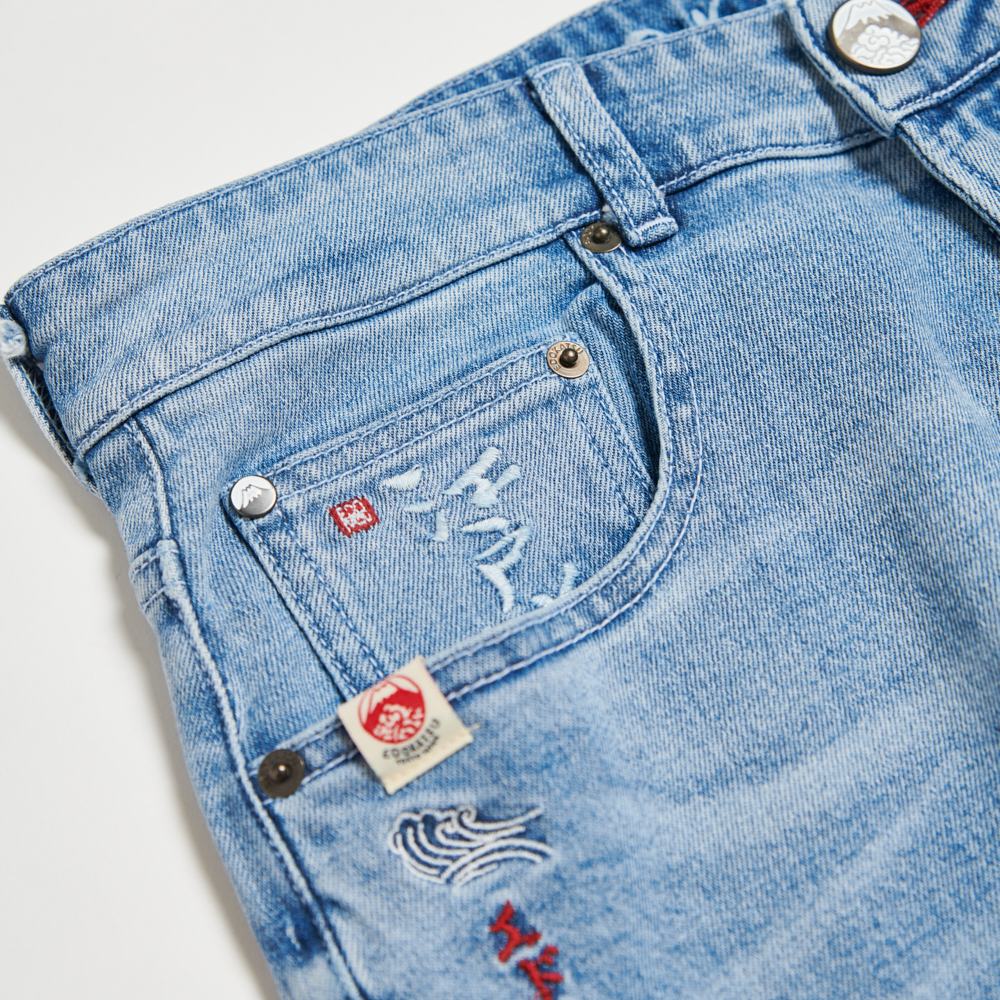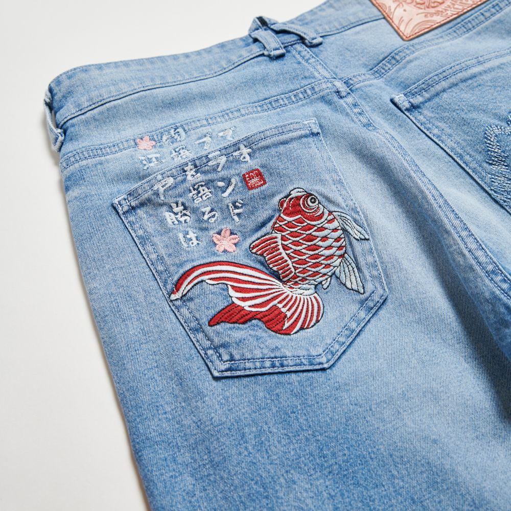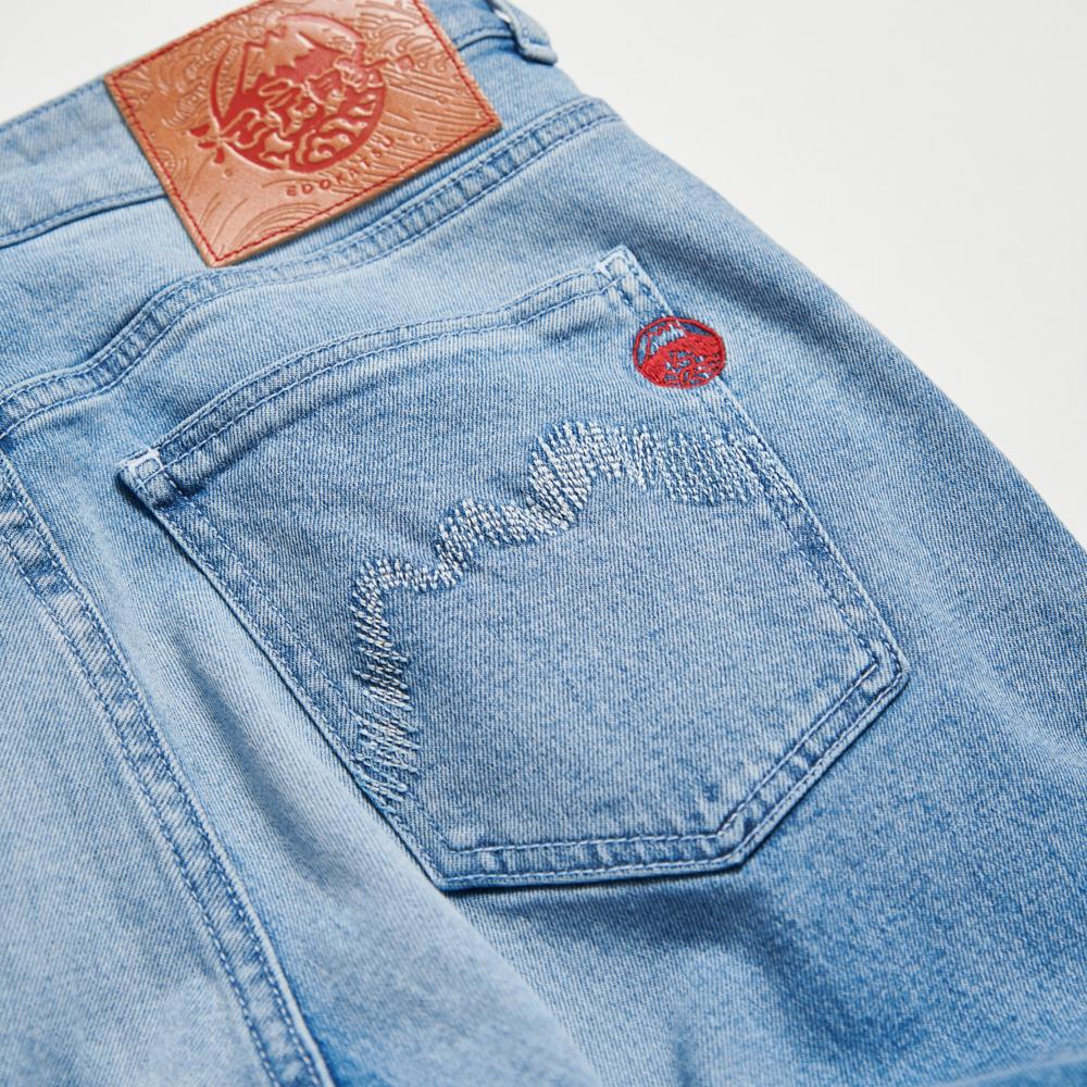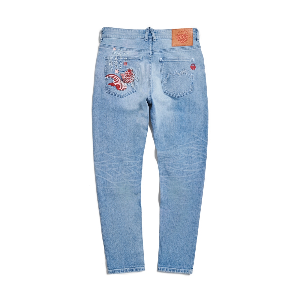 EDOKATSU江戶勝 男款 經典後袋金魚丹寧窄管直筒褲 (漂淺藍)