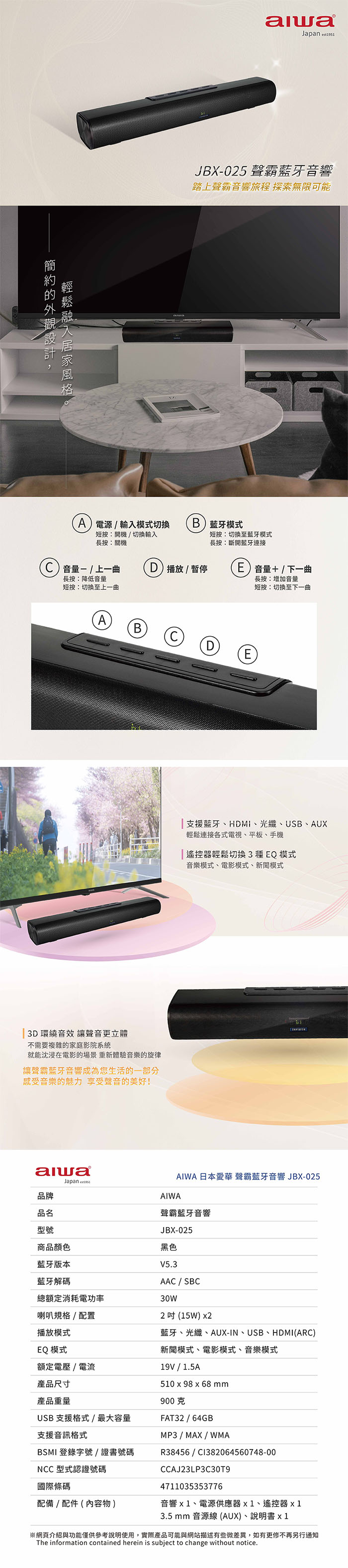 【AIWA 愛華】 聲霸藍牙音響 JBX-025