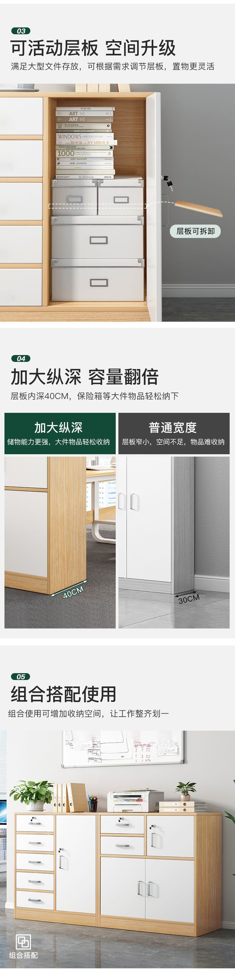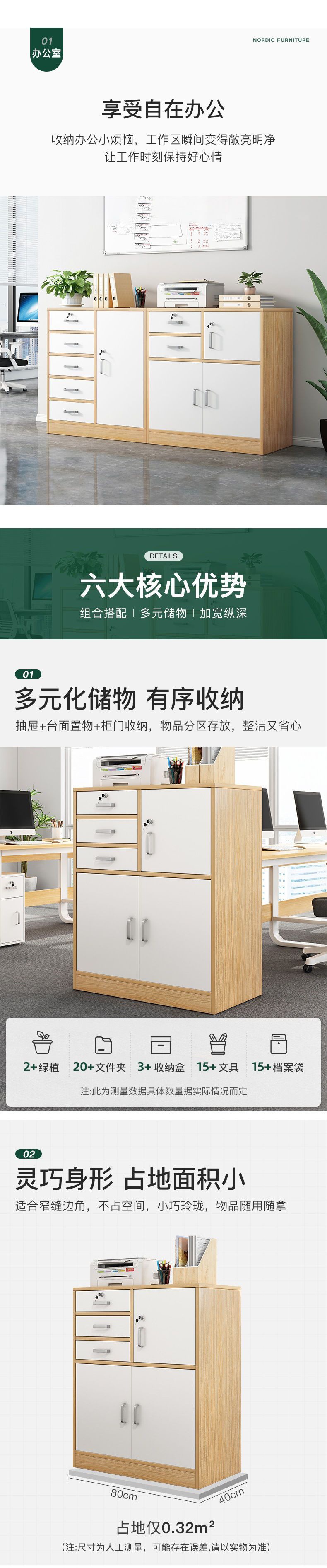 5. 辦公室文件櫃矮櫃子儲物櫃資料檔案帶鎖抽屜收納櫃辦公桌邊櫃側櫃