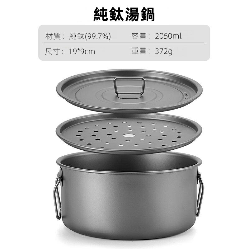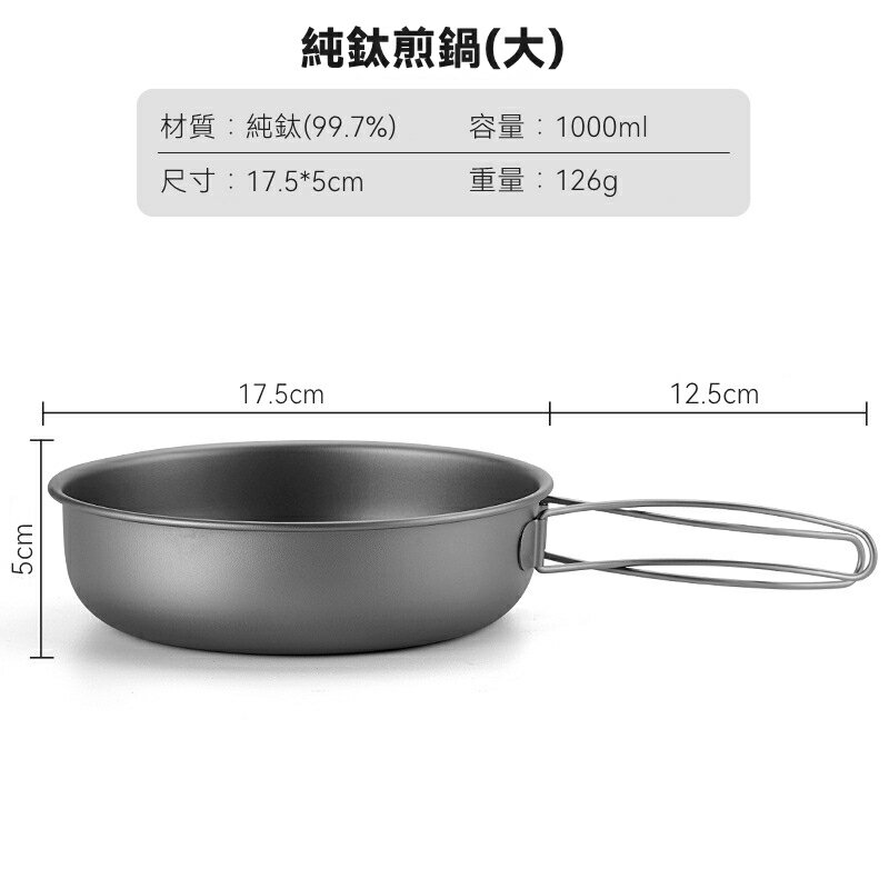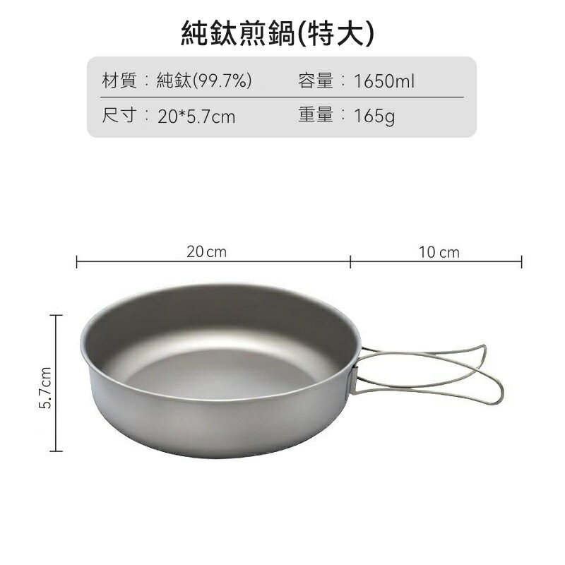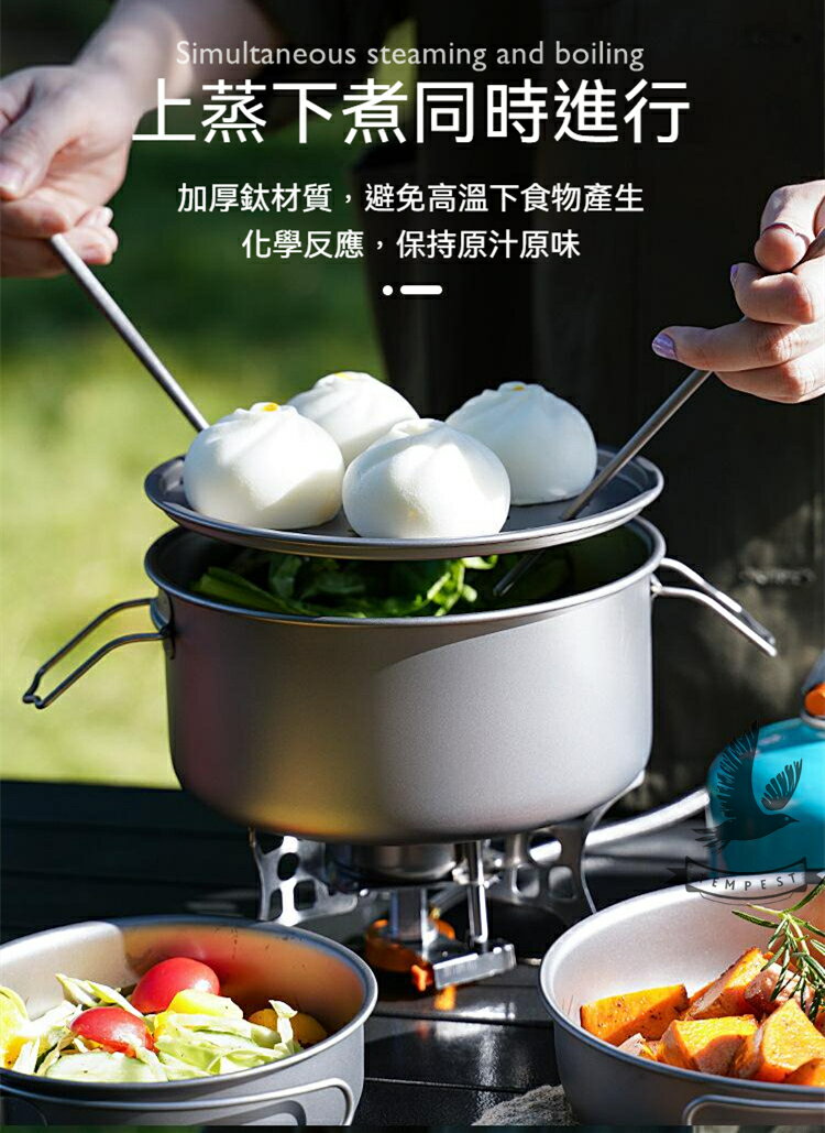 裝搭配都可以堆疊,套裝後會再贈送高級保溫收納袋,詳情可以參考加購區(滿額贈送)【商品規格】🔹名稱:純鈦燉蒸兩用鍋子🔸尺寸:如圖介紹圖片所示🔹材質:鍋具:純鈦 手把:純鈦 鍋蓋:純鈦 蒸盤:純鈦🔸使用方法:可參考商品影片介紹。🔹用途:露營和野外旅行、登山和徒步、野餐和野外烤肉、戶外探險和考察、旅行和戶外用餐🔸商品特色:探索美食多元化的極致工具——純鈦燉蒸兩用鍋子!無論是炖煮美味的湯品還是精緻的蒸菜,它都能滿足您的需求。🍲🔥🍳【優點】純鈦燉蒸兩用鍋子帶給您以下獨特優勢:🔺 多功能設計:配備蒸盤和煎鍋,實現煮、蒸兩種烹飪方式,滿足您不同的烹飪需求。🔆 快速導熱:採用鈦合金材質,具有快速導熱的特性,讓您的烹飪更加高效。⚖️ 輕量便攜:重量輕,方便攜帶,為戶外烹飪提供便利性。【與其他產品的差異】為何選擇我們的純鈦燉蒸兩用鍋子?與其他產品相比,我們的鍋子具備以下獨特差異:1️⃣ 多功能設計:配備蒸盤和煎鍋,一鍋多用,實現煮、蒸兩種烹飪方式。2️⃣ 快速導熱:採用鈦合金材質,快速傳熱,讓您的烹飪更加高效,省時省力。3️⃣ 輕量便攜:重量輕,方便攜帶,適合戶外烹飪和旅行使用。【使用場合】🏡 家庭廚房:實現多種烹飪方式,滿足家庭成員的口味需求,輕鬆烹飪美食。🏕️ 露營烹飪:便攜輕巧,適合戶外烹飪,讓您在野外享受美食的樂趣。🍽️ 親朋聚餐:搭配蒸盤和煎鍋,輕鬆製作精緻的蒸菜和炒菜,展示您的烹飪技巧。選擇純鈦燉蒸兩用鍋子,讓您的烹飪更加多樣化、高效!🍲🔥🍳🔴下單前注意🔴🔹下單前請向客服確認是否該顏色該長度有貨品,若沒顏色會隨機出貨顏色(長度相同,不同顏色),若對於賣場商品上有任何問題,可透過我們店長客服了解,確認是否是您需要的商品功能後再下單。🔹商品有新品味、極小色差、分模線、縫合線等等,不影響使用功能皆不屬於瑕疵判定,商品尺寸皆由手工人為量測,會有些許誤差【約1mm~3mm 】請【完美主義者右轉離開】,避免造成不需要的人力溝浪費。🔹購買前請詳細確認訂單尺寸、顏色、規格,若因選錯尺碼等問題需換貨,【7天內且未完成訂單者退貨無需承擔任何運費】,7天內完成訂單者且需退貨請參閱下方🔴退換貨須知🔴 請消費者須知 ,「鑑賞期」非「試用期」 。🔹有需要打【統編】直接於【訂單內備註】或者店長客服告訴小編。🔴下單後注意事項🔴🔹商品新品有些會有新品味道,通常放置通風處1~2天候會消散,請買家放心,完美主義者請勿以此為評價手段抨擊商品,我們會依照不實言論對您抨擊做法律維護權益。🔹對於商品有任何疑問,可透過店長客服找我們小編,我們將會為您處裡售後服務。🔹若商品產生出寄條碼代表我們已經包裝裝車準備出貨,若過程中需取消訂單,不易在眾多包裹中找尋您的包裹,所以您可以等待商品出貨後選擇不取貨,單要告訴我們未取貨原因,若是忘記取貨也請回應。🔴出貨注意事項🔴🔹皆由台灣出貨,非海外賣家!🔹每天下午6點結單並出貨,6點後訂單會於隔天再進行出貨。🔹賣場天天都會出貨(包含星期日),但遇訂單過多的時候,出貨順序依照下單付款順序,請耐心等待。🔹超商寄出後約1~3個工作天配達(若有遇到活動導致配送延遲,可電洽樂天課服詢問配送進度)。🔸7-11/全家/萊爾富【正常約1~2天到門市】遇大促銷節日延後1~2天🔸【正常約1~3天到貨】遇大促銷節日延後1~2天🔸宅配/樂天宅配/中華郵政下單出貨以後【約1~2個工作天到貨】 (遇到周日則多計算一天)【如果下單數量較大或商品體積較大,可能會超過超商限制配送大小,請改用宅配/樂天宅配/中華郵政下單】🔴退換貨須知🔴🔹若商品為消耗性商品/一次性使用物品/貼身物品/電池類商品,猶豫期非試用期,請悉知。🔹我們【出貨前都會錄影並拍照並對照訂單內容撿貨】,電器類產品都會測試後再出貨並錄影拍照測試過程,為了保護雙方權益,故也請買家【開箱時全程🎦錄影🎦並測試商品】🔹商品若有瑕疵,可以錄影並說明原因在我們店長客服上,我們會依照此影片或照片判定退換貨。🔹七天內若在後臺訂單完成,並需要換貨,可參考樂天購物幫助中心【訂單完成後是否可以申請退貨退款呢?】進行退換貨處裡。🔹退貨時商品包裝請完整退還,若有包裝損毀(撕裂)導致無法二次銷售之情形,會酌收30%整新費用,若寄回商品時使用軟包裝袋導致商品壓傷損毀亦屬此範圍內請悉知。🔴保固商品維修換貨事項🔴🔹買家商品收貨後開始計算保固。🔹商品保固未標示產品皆為3個月,保固內商品非人為因素故障可郵寄(或超商)更換,七天內屬於鑑賞期,來回運費由賣家支出,七天後由買家支出來回運費進行維修/替換貨。🔹附贈商品屬於不保固範圍(如:隨商品附增之充電線、防水袋、密封膠條、贈品)⚠️特別強調:📵本店圖均自製,擁有智慧財產權,請勿盜用~【鈦燉鍋】【鈦燉鍋】+【蒸盤】蒸煮裝【鈦燉鍋】+【蒸盤】+【大煎鍋】【堆疊一體套裝款】【鈦煎鍋-小】【鈦煎鍋-中】【鈦煎鍋-大】【鈦煎鍋-特大】
