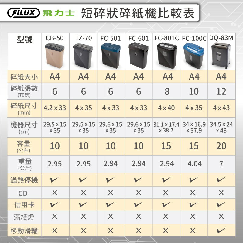 FILUX 飛力士 短碎狀專業碎紙機 FC-501 (機體一年保固) [原廠]