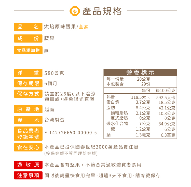 【年貨預購】*純天然烘焙無調味,忠實呈現腰果最原始風味!
