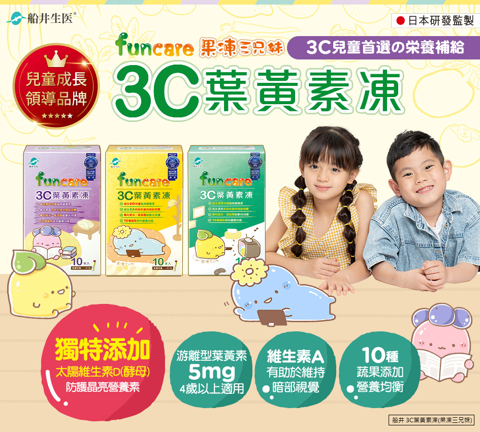 船井 3C葉黃素凍 果凍三兄妹款 (10入/盒)x10盒 (三款包裝隨機出貨)