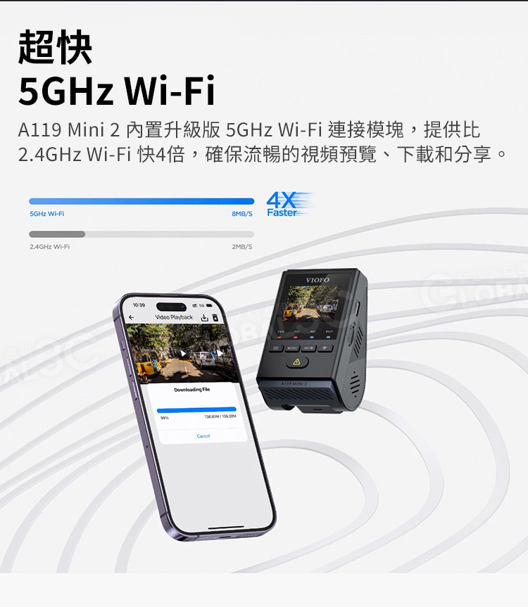 ◆【內建Wi-Fi和GPS】5GHz高速Wi-Fi可以在標準頻率範圍內進行傳輸。更穩定的Wi-Fi信號和更快的Wi-Fi速度為文件傳輸帶來了飛速的速度。借助GPS記錄器,行車記錄儀可以記錄當前速度和GPS位置,還可以通過與衛星同步自動校正時間。時間可以嵌入影像中。