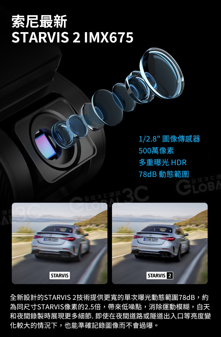 ◆【升級的超級夜視和WDR】配備5百萬像素IMX675 Starvis2 1/2.8圖像傳感器,比夜間大多數行車記錄儀提供更清晰的圖像和WDR(寬動態範圍)技術,保持清晰的圖像並自動平衡明亮和黑暗區域的照明。幫助捕獲其他攝像機無法讀取的清晰細節,例如路標,車牌。