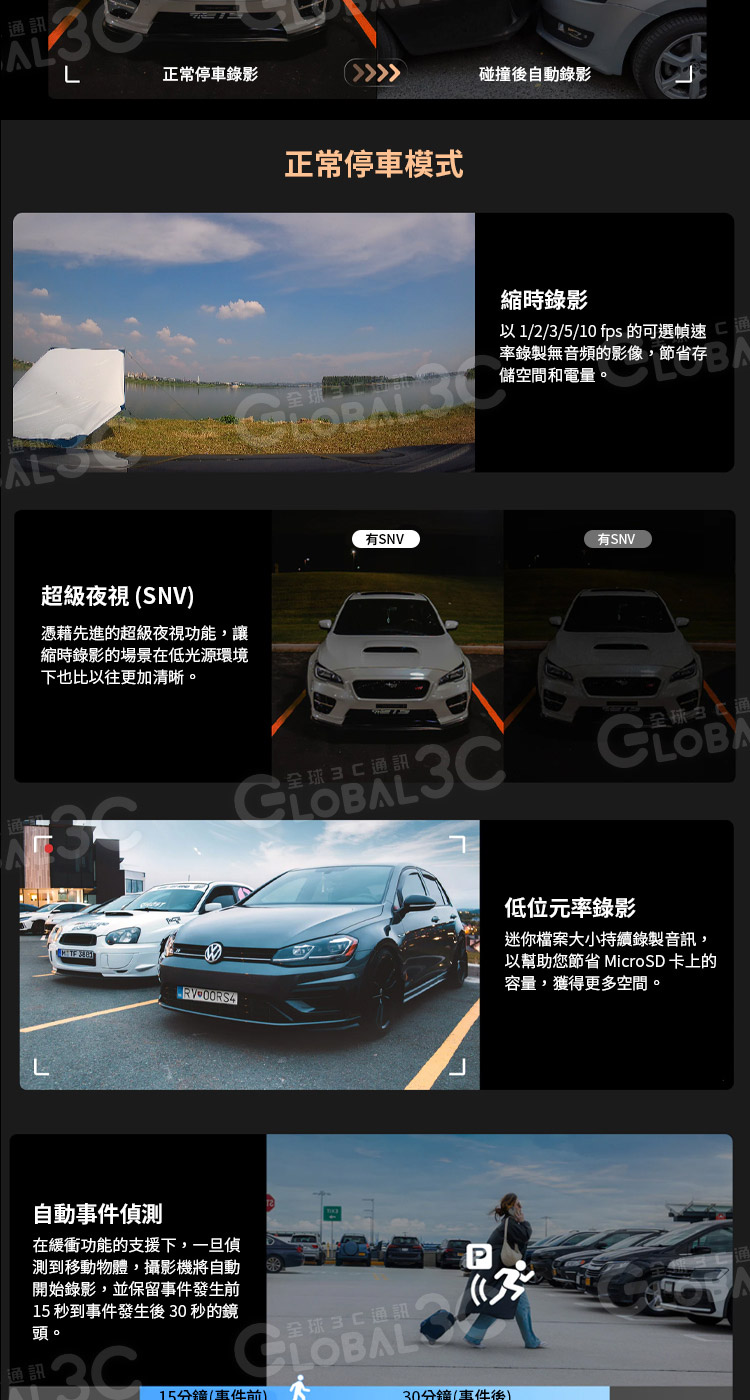 ✨多種停車模式:混合停車記錄/低功率碰撞偵測/自動事件偵測/縮時拍攝/低位元率記錄
