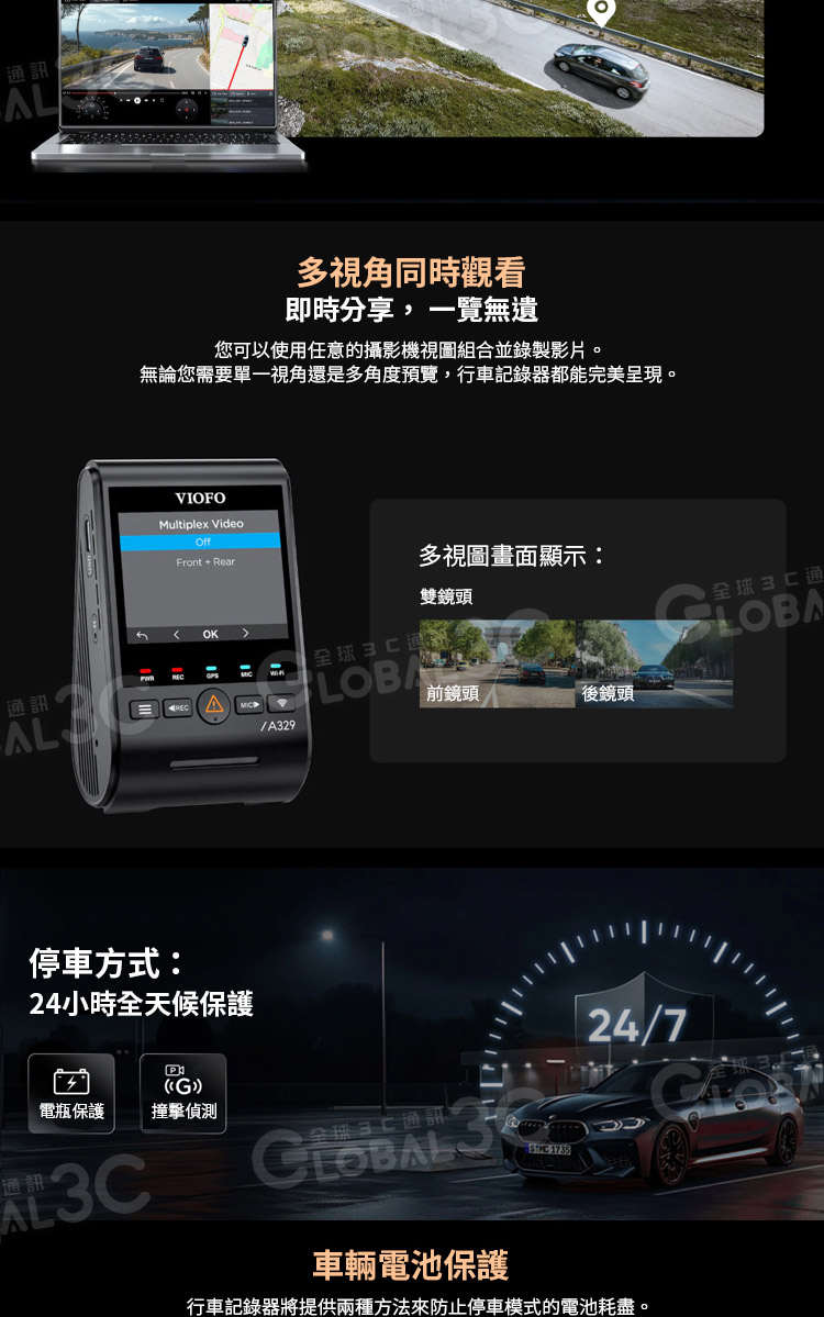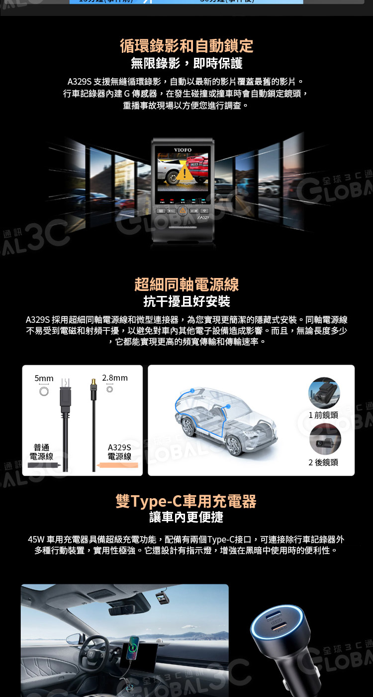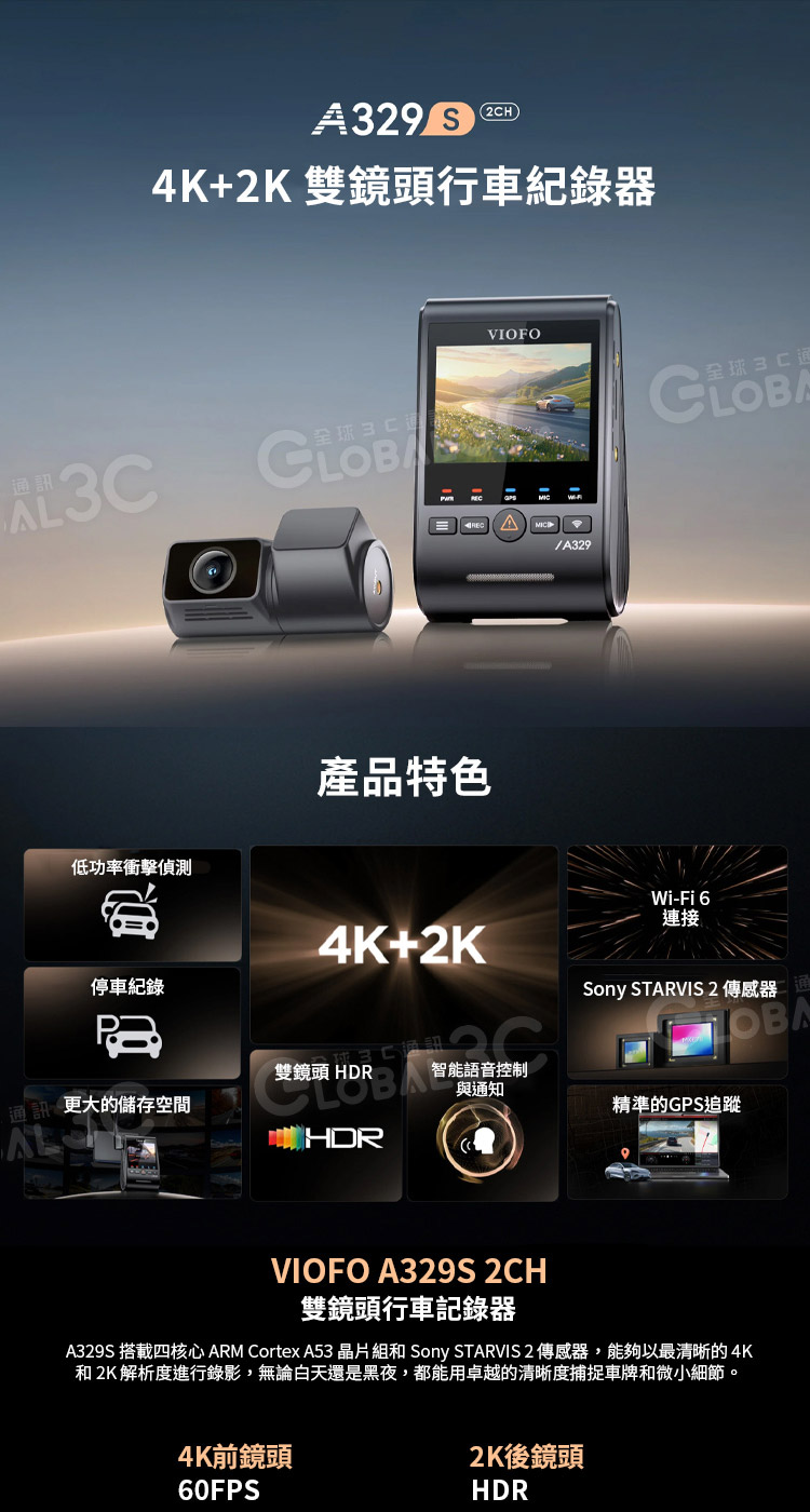 [台灣代理]VIOFO A329S 2CH 雙鏡頭行車記錄器 (4K前鏡頭+2K車內後鏡頭)