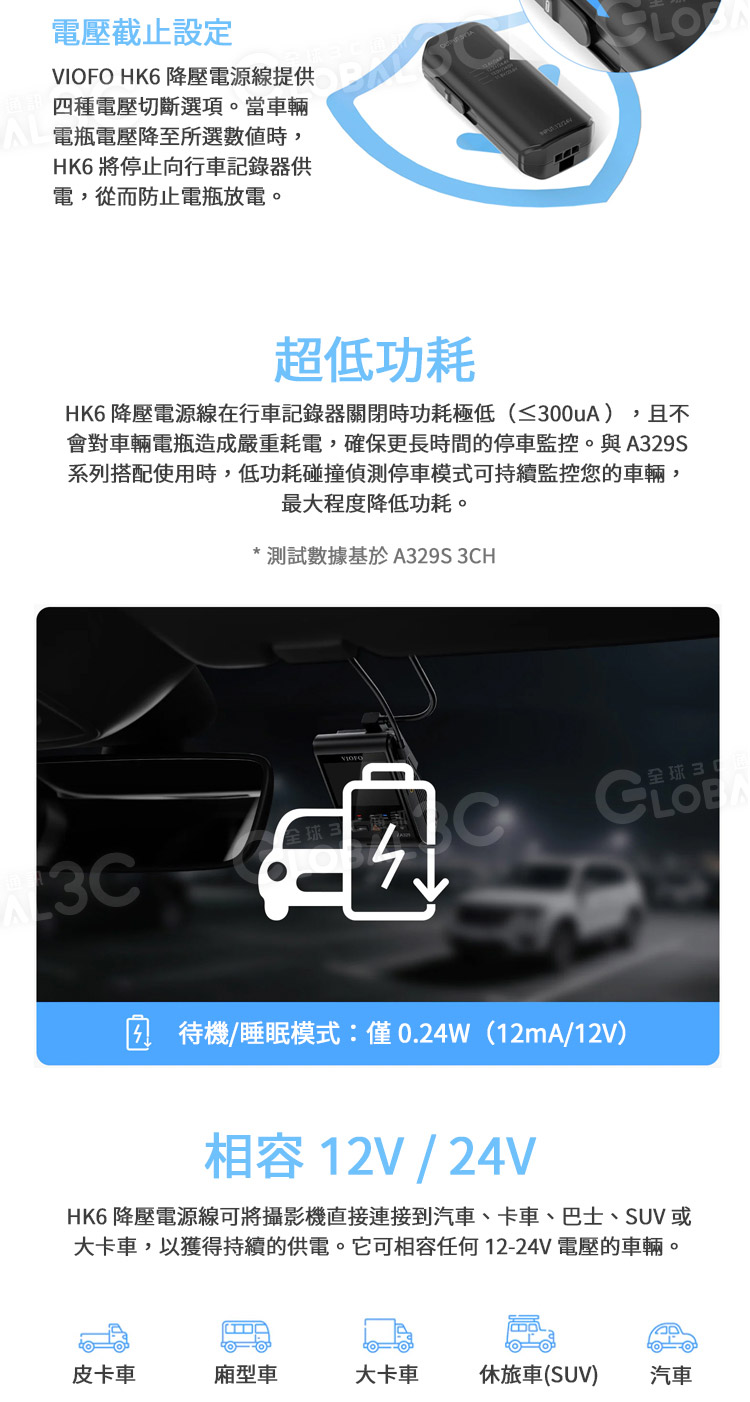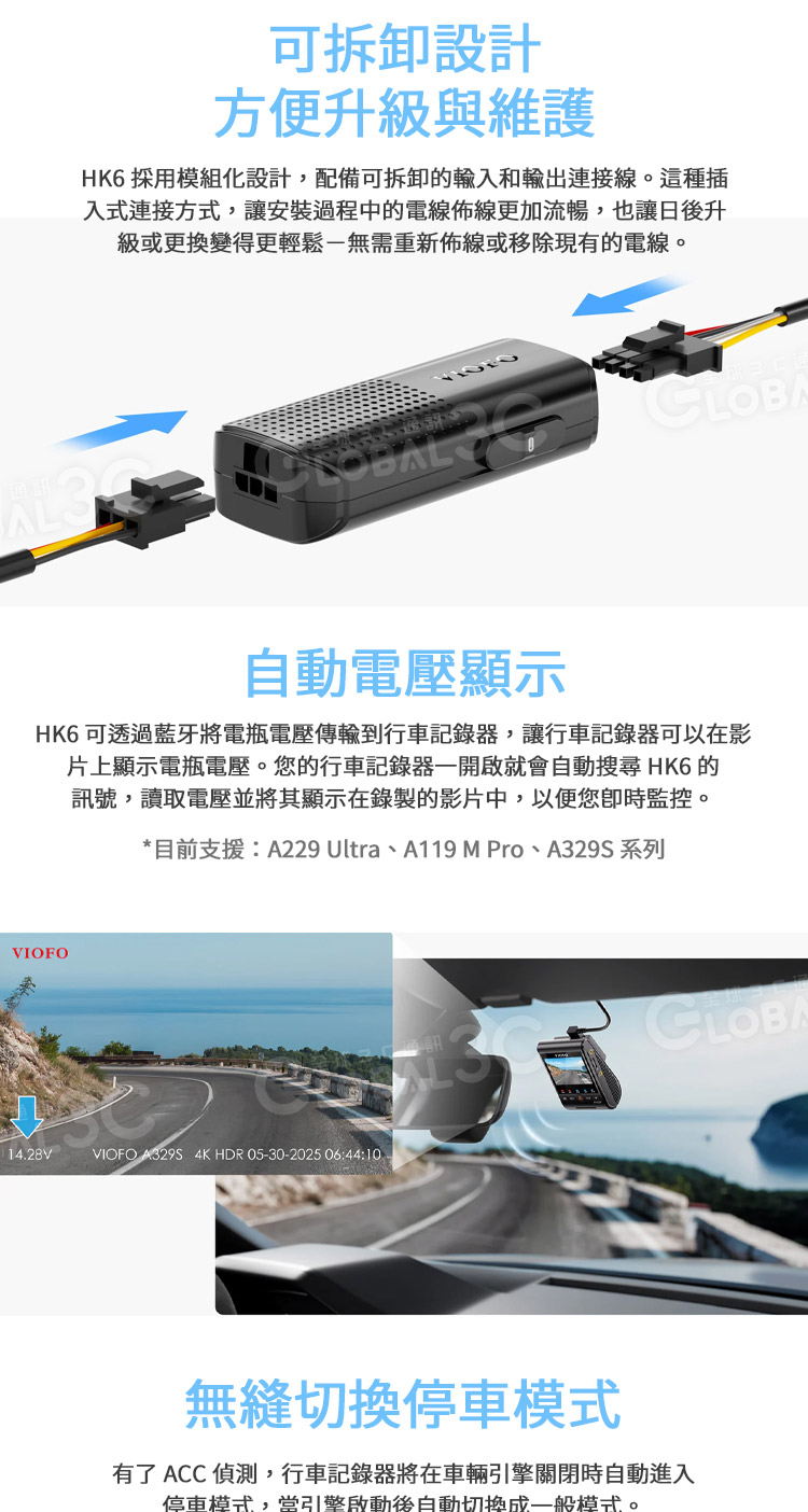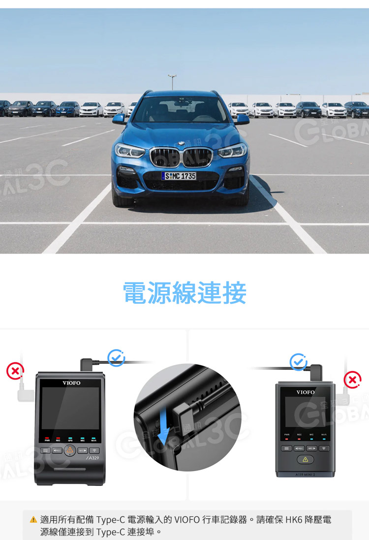 注意:HK6降壓線目前僅支援VIOFO A229 Ultra、A119 M Pro、A329S等後續新款系列行車記錄器