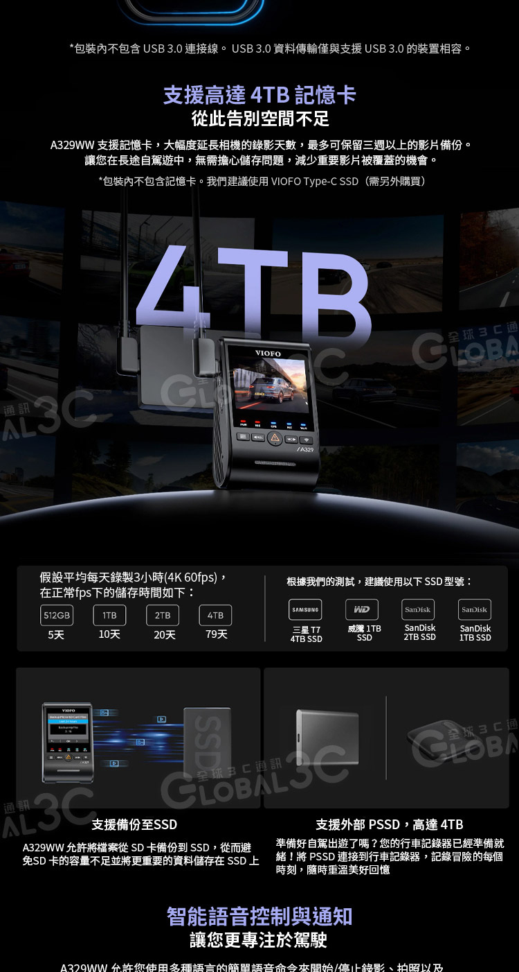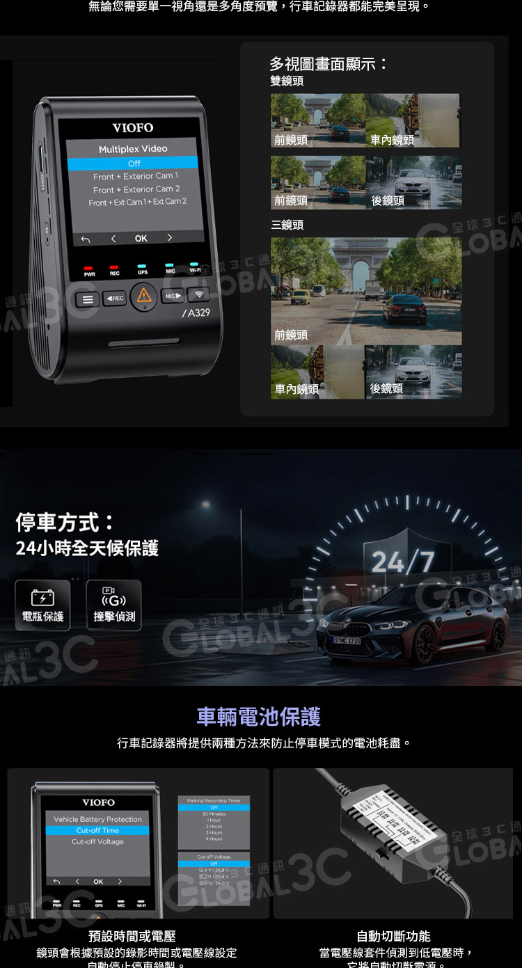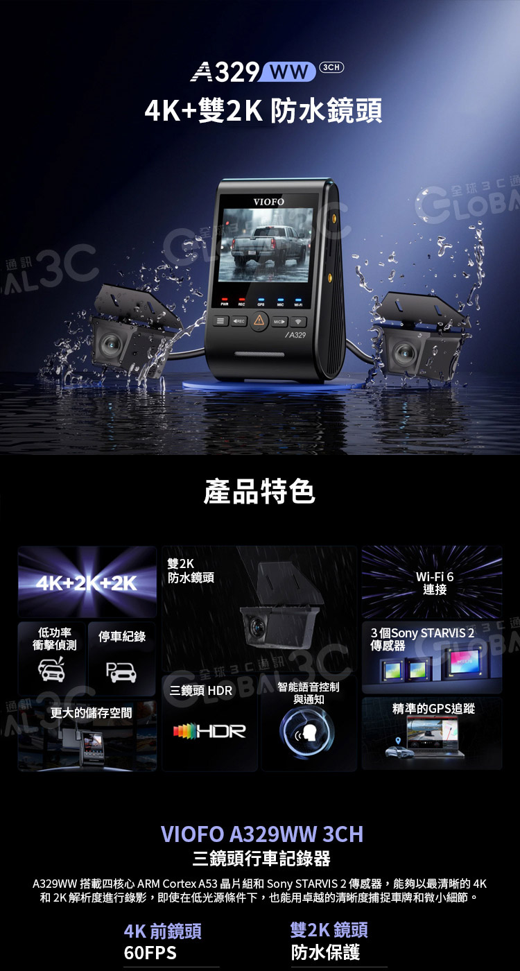 VIOFO A329WW 3CH 三鏡頭行車記錄器 (4K前鏡頭+2K車外防水鏡頭+2K車外防水鏡頭)