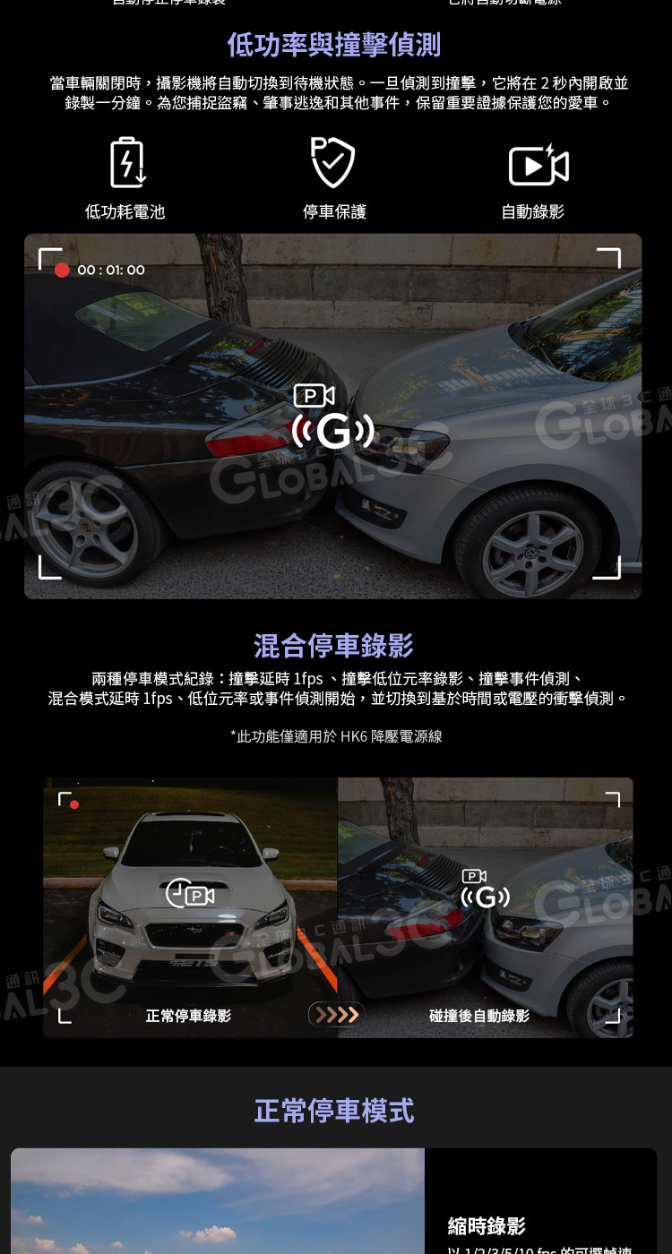 ✨多種停車模式:混合停車記錄/低功率碰撞偵測/自動事件偵測/縮時拍攝/低位元率記錄