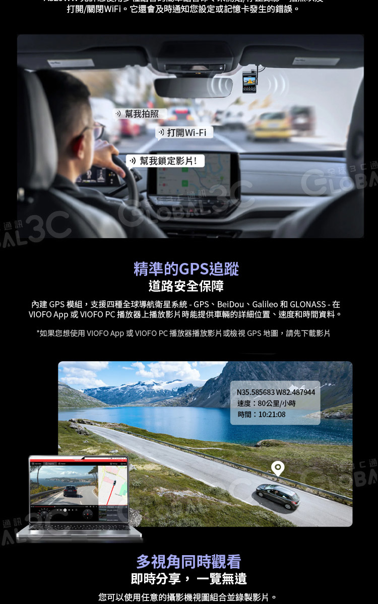 3. 【內建Wi-Fi和GPS】更穩定的Wi-Fi信號和更快的Wi-Fi速度。借助GPS記錄器,行車記錄器可以記錄當前速度和GPS位置,還可以通過與衛星同步自動校正時間。