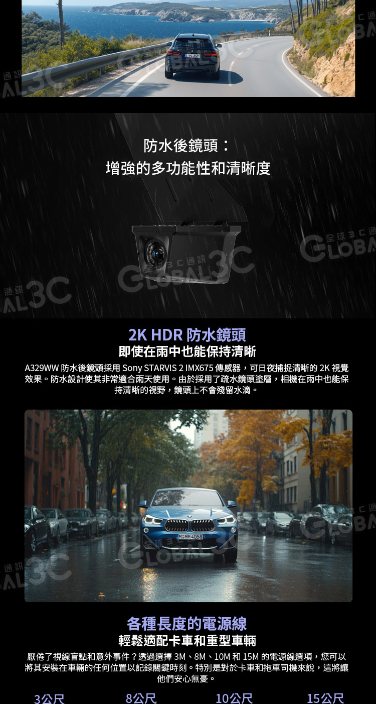 ✨雙2K防水鏡頭,雨天也能在車外安全地進行監控錄影