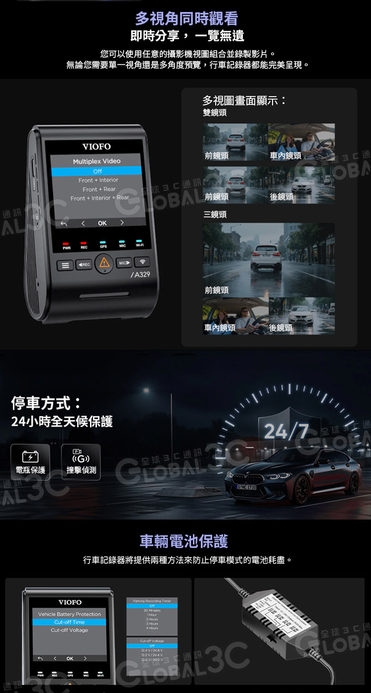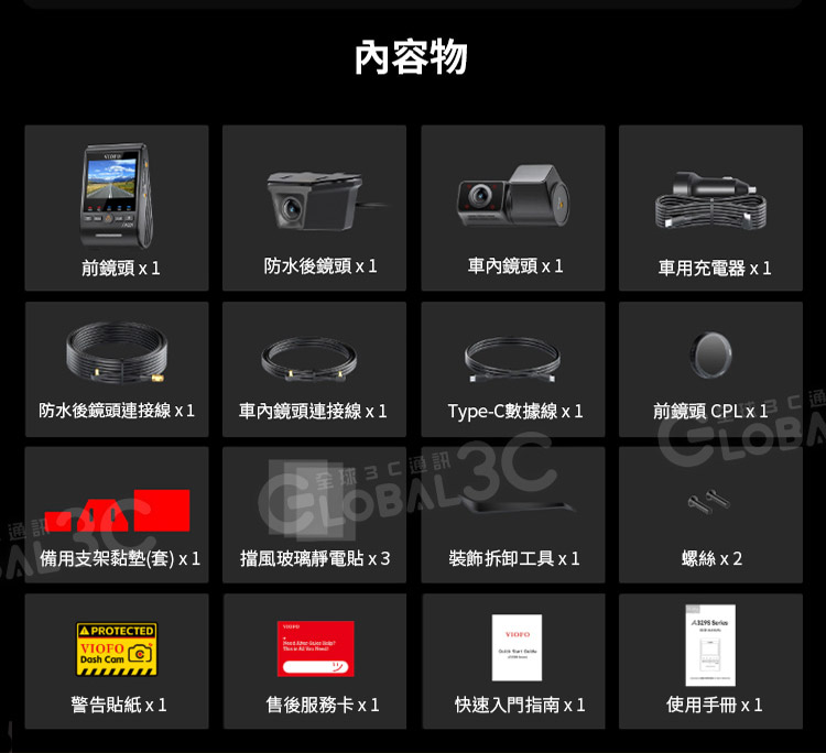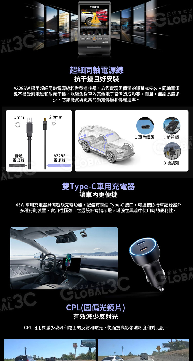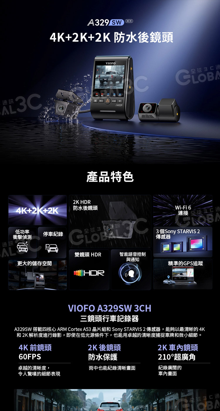 VIOFO A329SW 3CH 三鏡頭行車記錄器 (4K前鏡頭+2K車內超廣角鏡頭+2K車外防水後鏡頭)