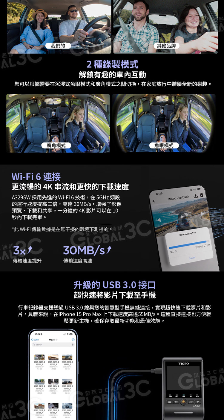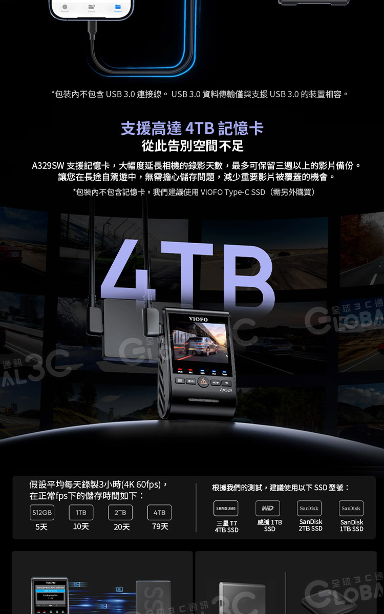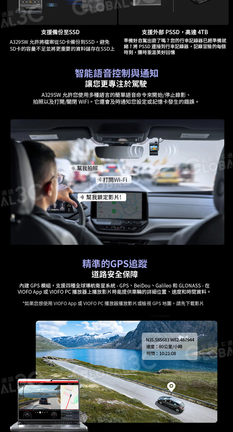VIOFO A329SW 3CH 三鏡頭行車記錄器 (4K前鏡頭+2K車內超廣角鏡頭+2K車外防水後鏡頭)