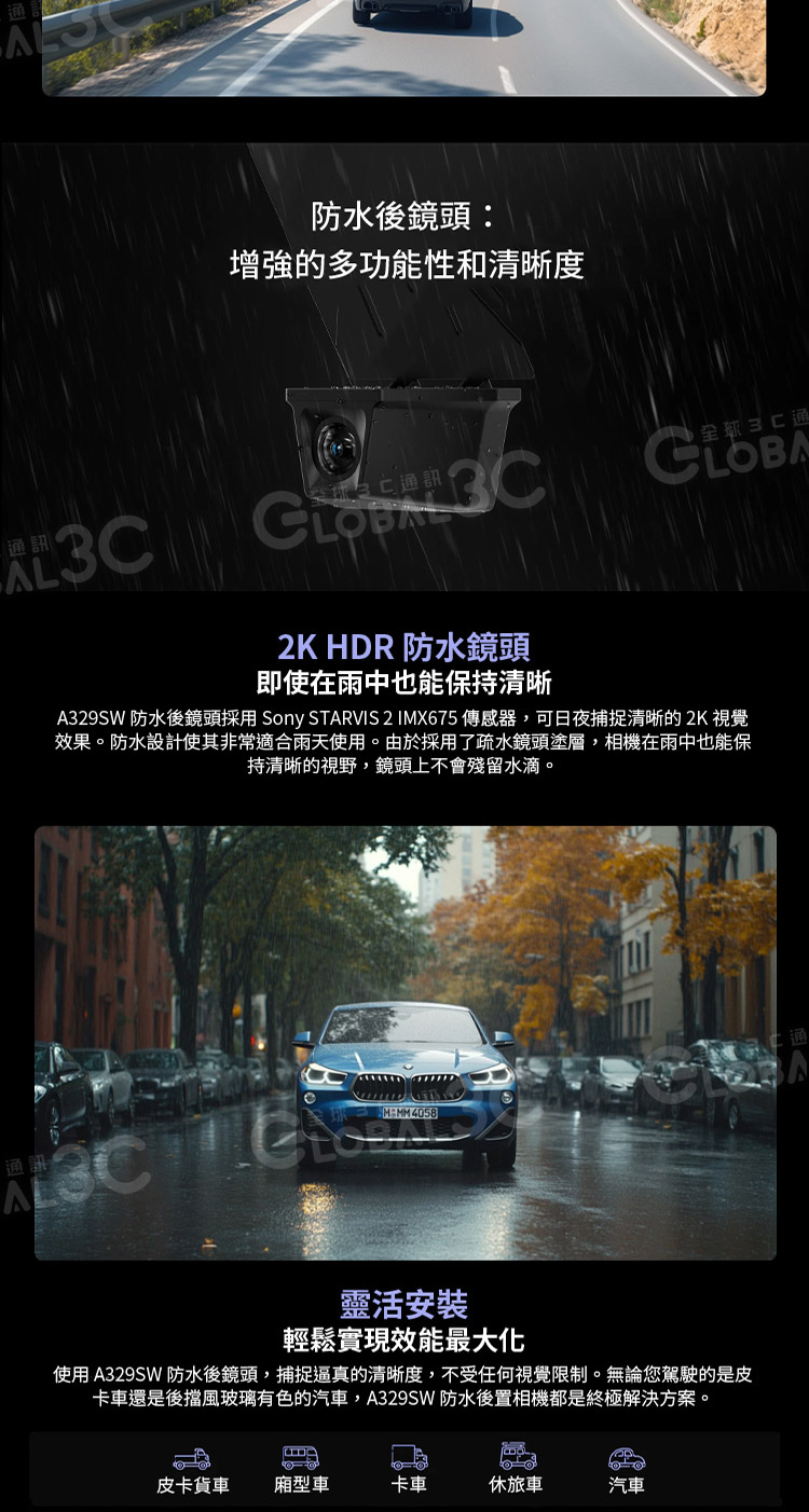 ✨支援2K防水後鏡頭,雨天也能安全地進行監控錄影