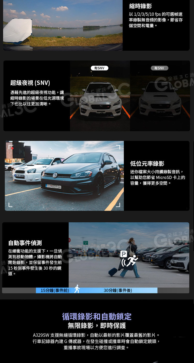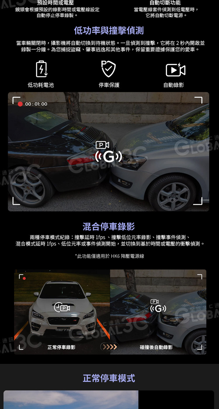 ✨多種停車模式:混合停車記錄/低功率碰撞偵測/自動事件偵測/縮時拍攝/低位元率記錄