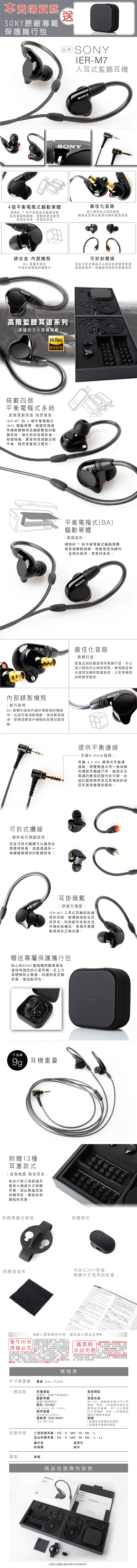 SONY IER-M7 高階入耳式監聽耳機 四具平衡電樞 Hi-Res 內附4.4mm線【邏思保固一年】