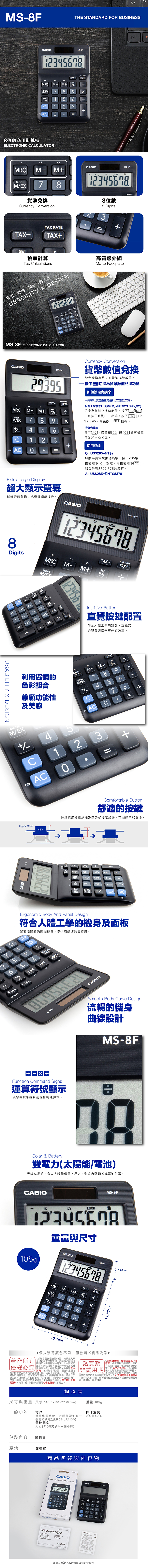 CASIO 卡西歐 商用計算機 MS-8F 雙電力 八位數 大螢幕