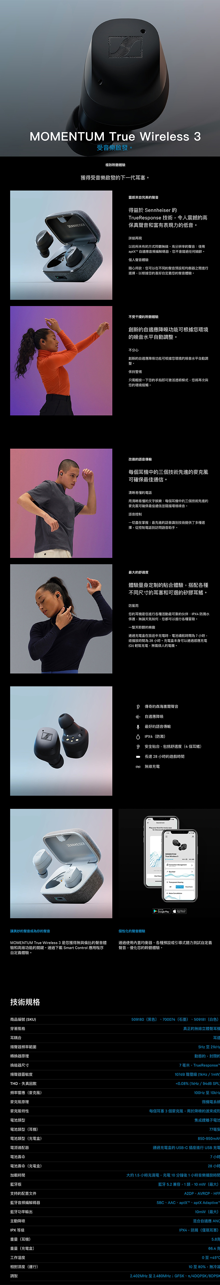 Sennheiser 真無線藍芽耳機 Momentum True Wireless 3 入耳式 降噪 防水