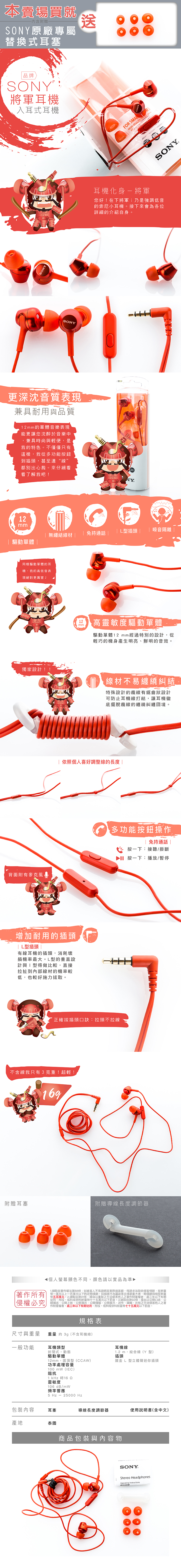 SONY 角色系列【將軍耳機】 入耳式 線控 麥克風 【公司貨保固】