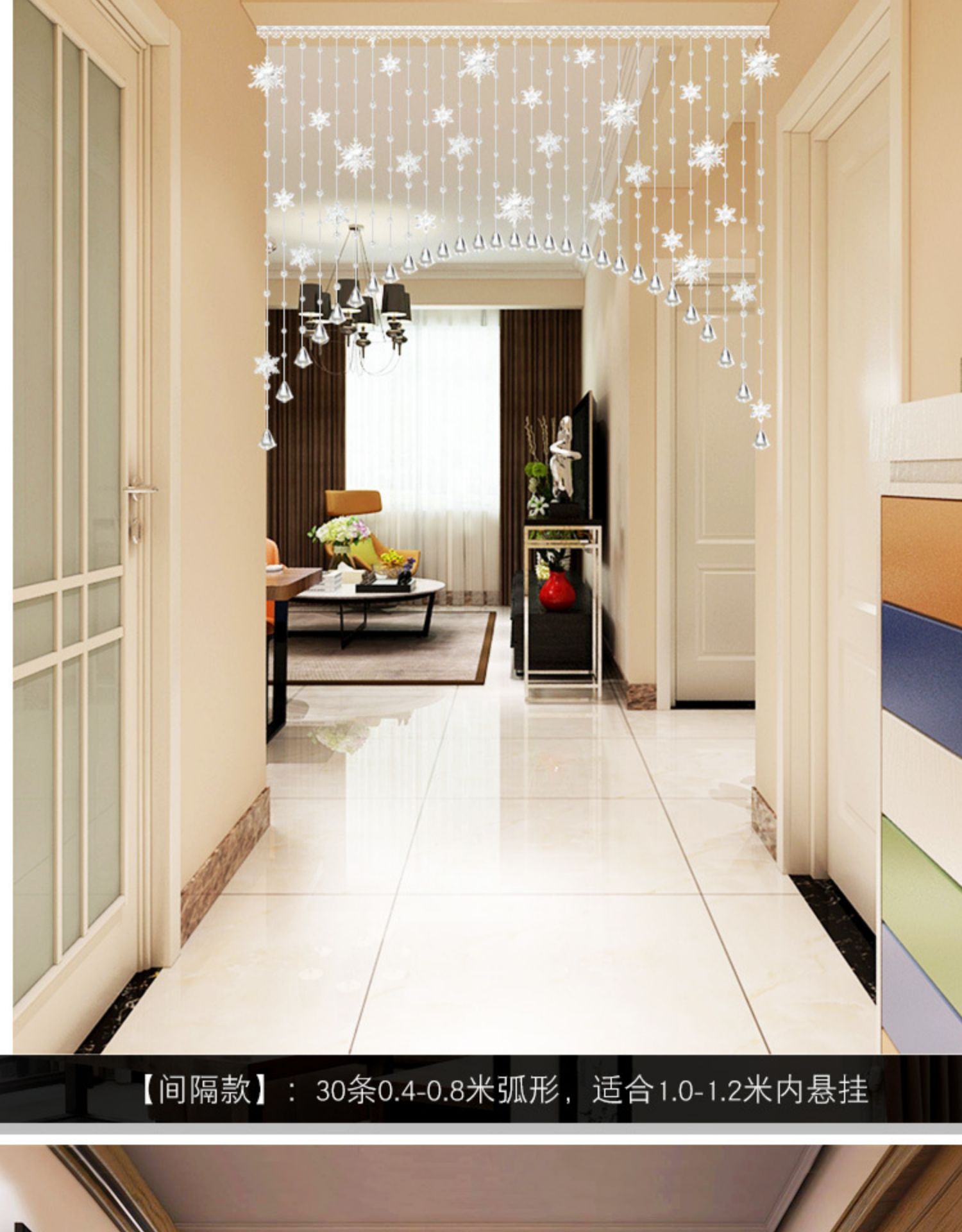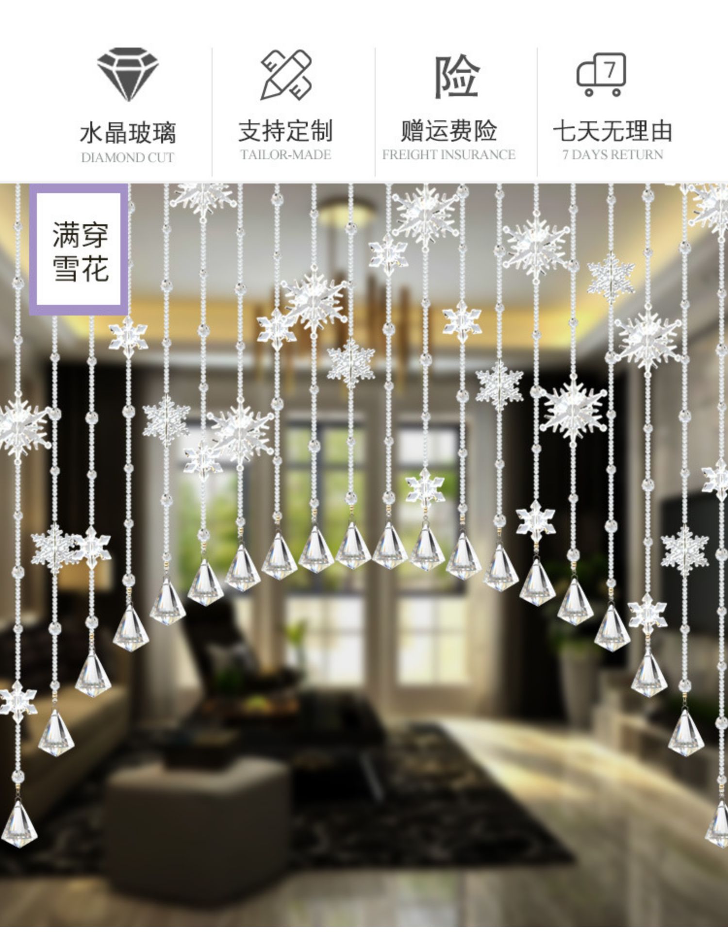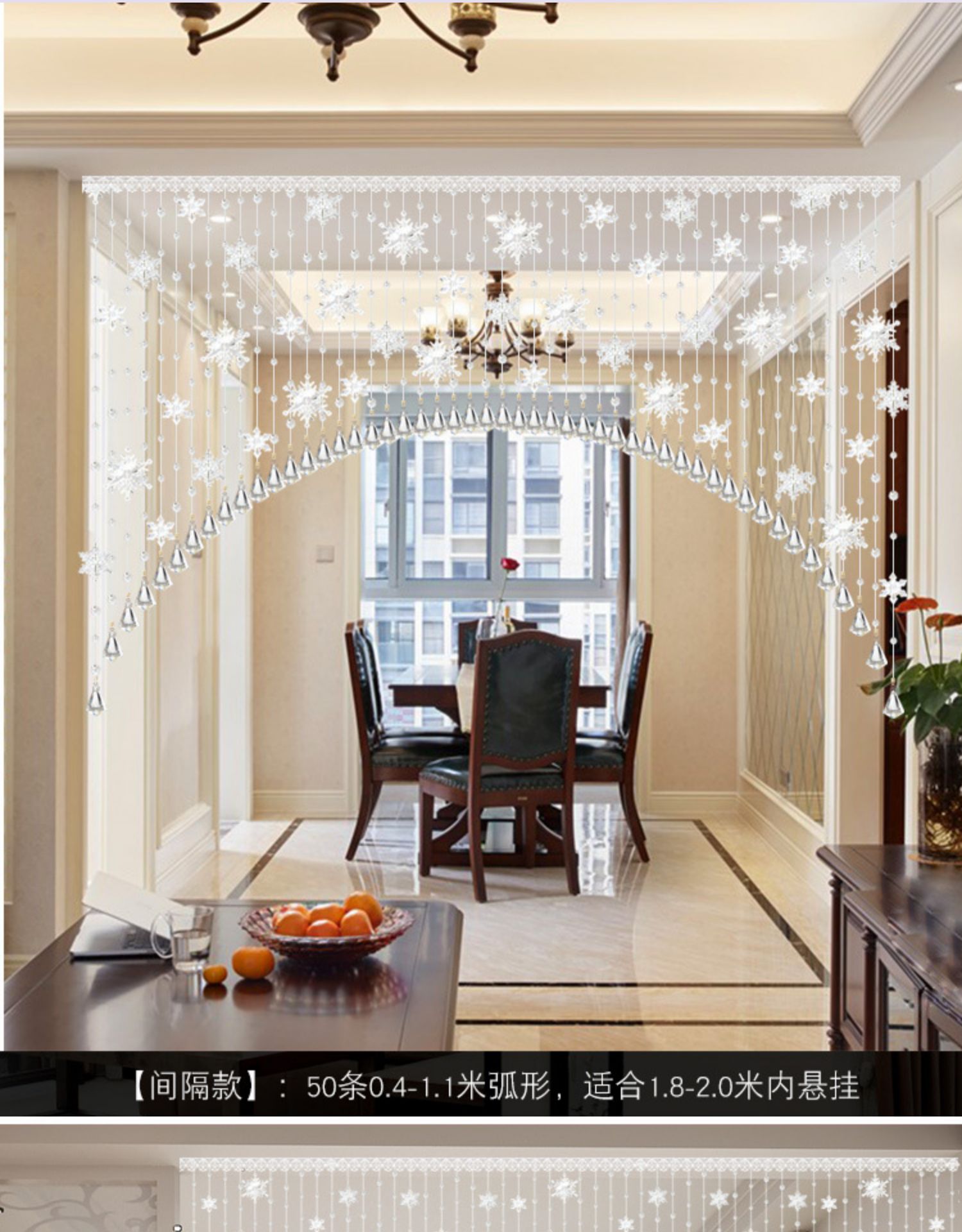 5. 珠簾 風水門簾 門簾 輕奢現代雪花水晶珠簾風水衛生間門簾客廳玄關隔斷簾北歐裝飾掛簾『cyd20140』