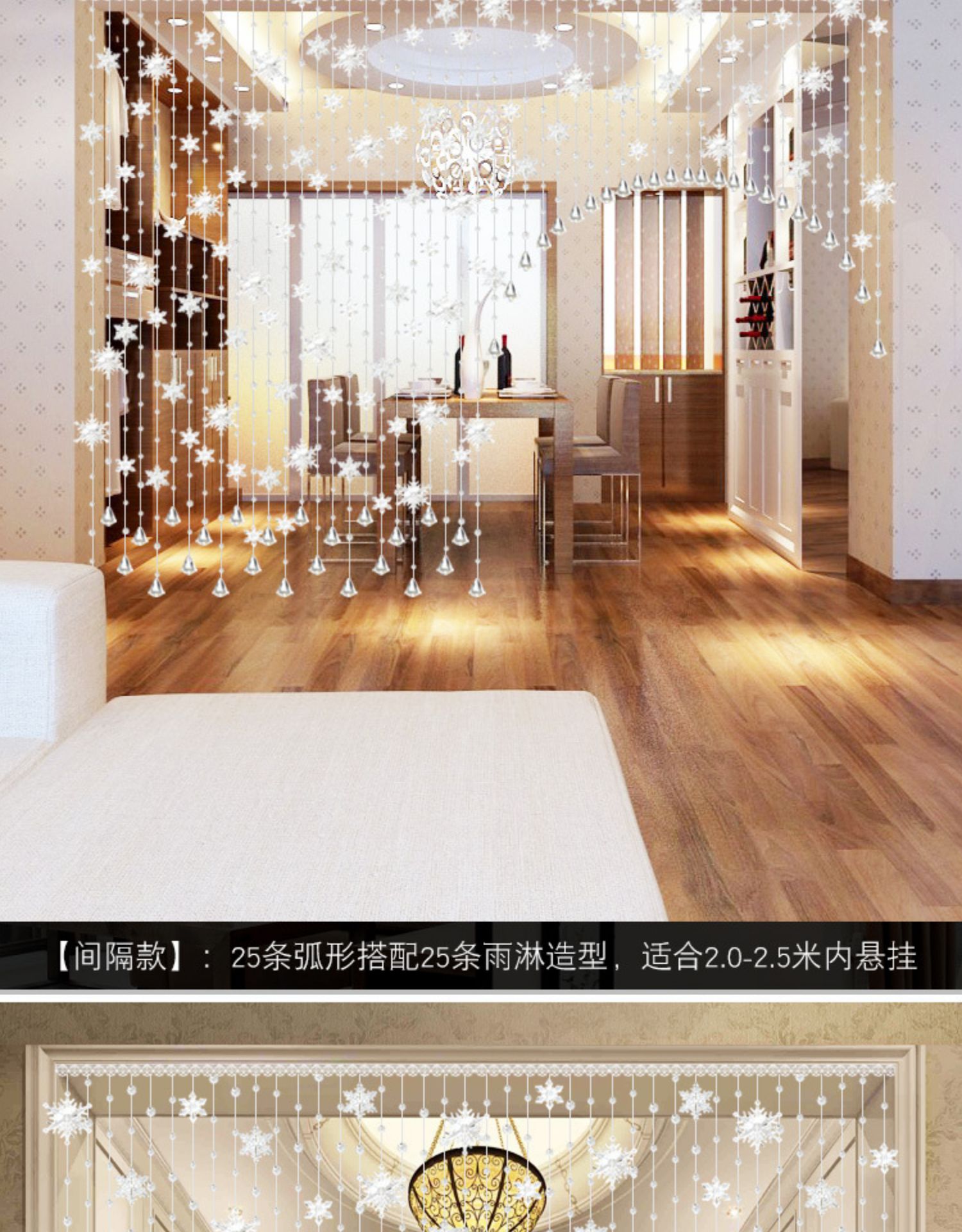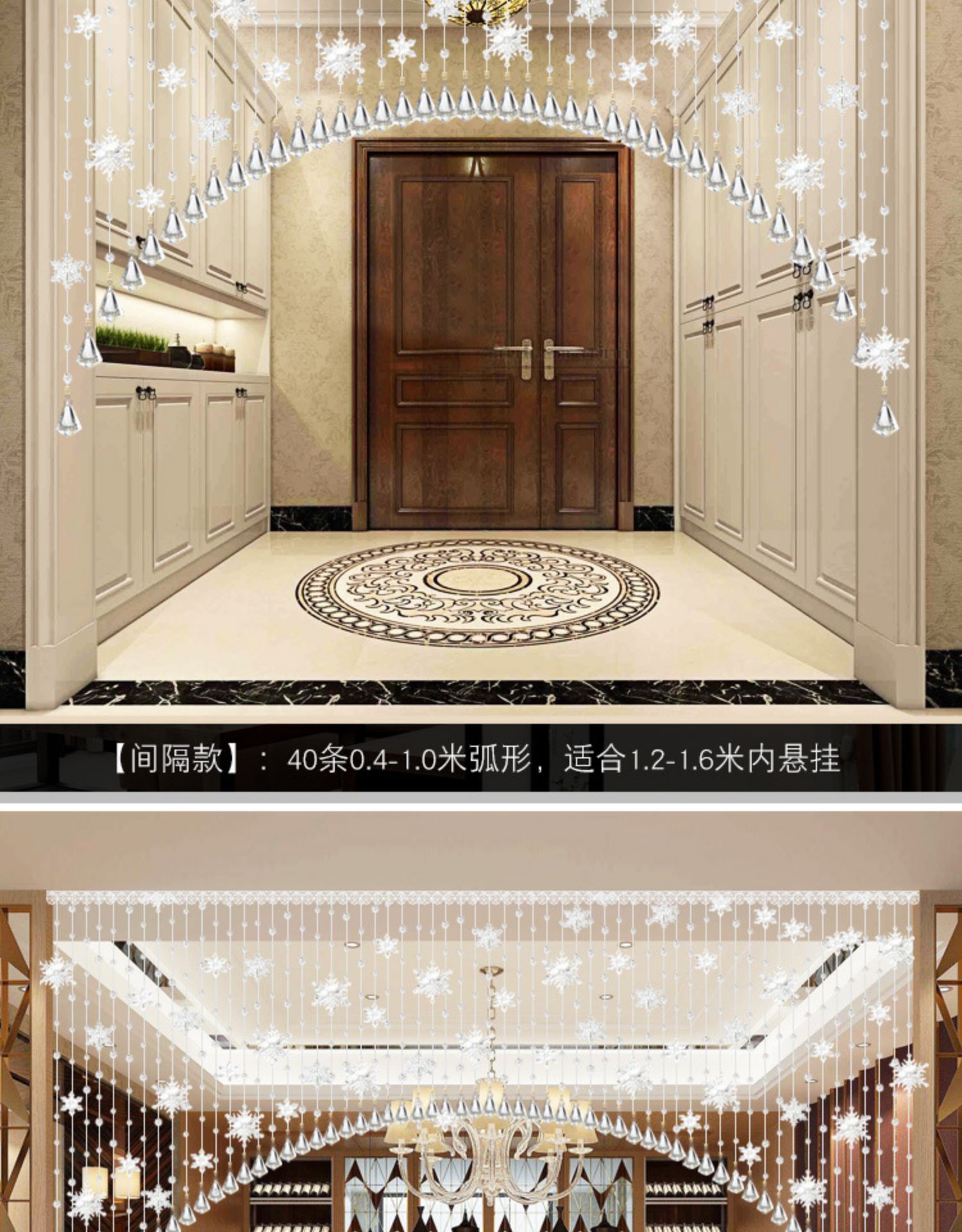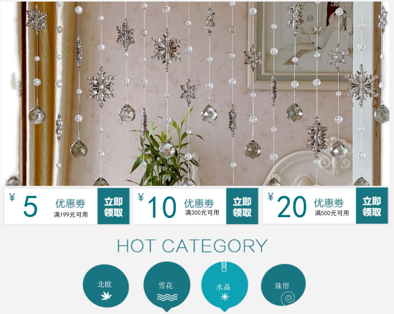 5. 珠簾 風水門簾 門簾 輕奢現代雪花水晶珠簾風水衛生間門簾客廳玄關隔斷簾北歐裝飾掛簾『cyd20140』