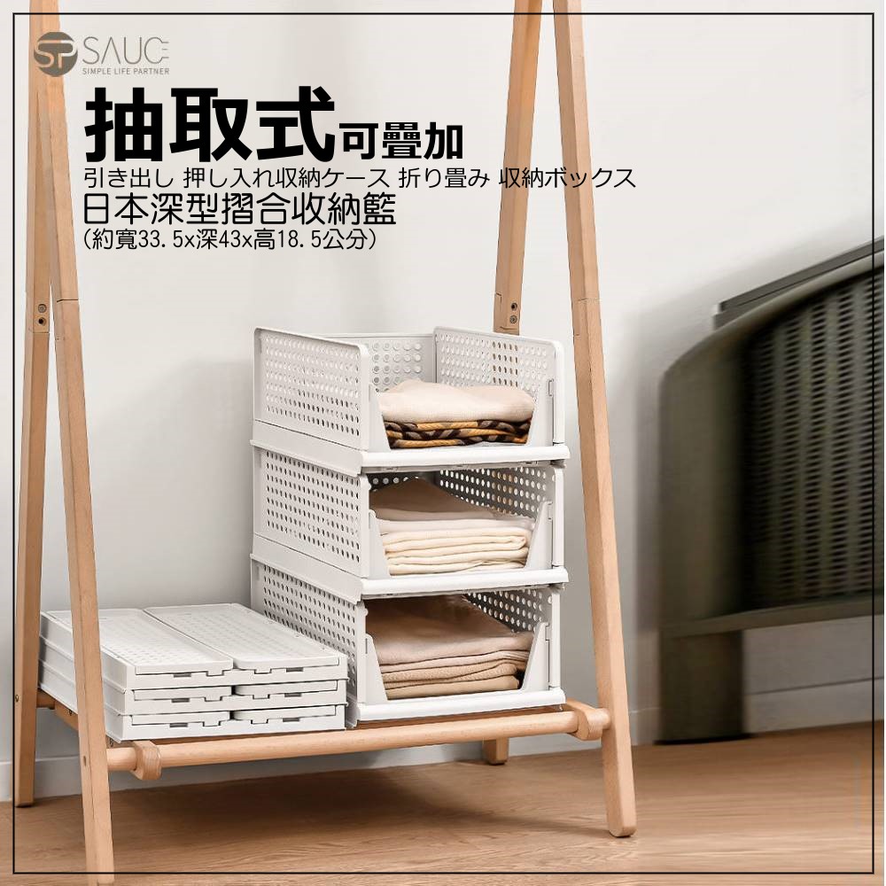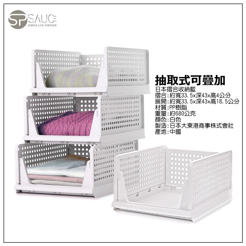 日本SP SAUCE抽取式可疊加-深型摺合收納籃