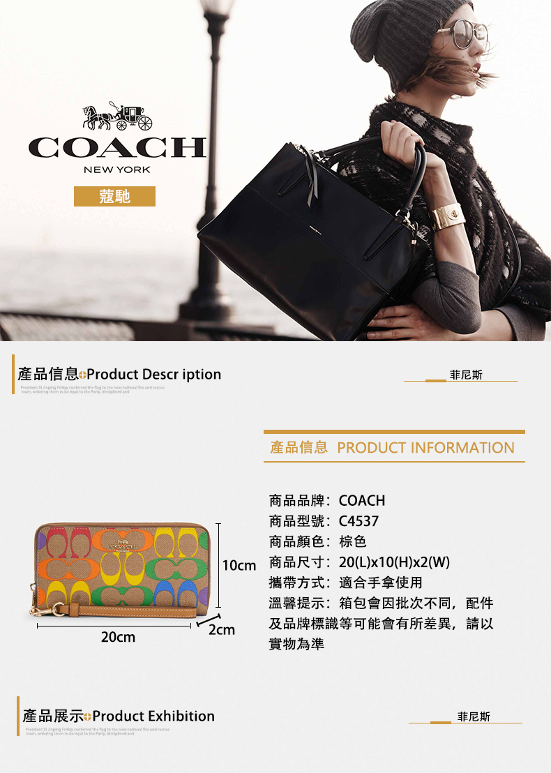COACH Rainbow Signature 彩虹帆布長拉鏈錢包女士錢包 C4537~【 菲尼斯 國際精品 ★ APP下單天天10%點數回饋 】