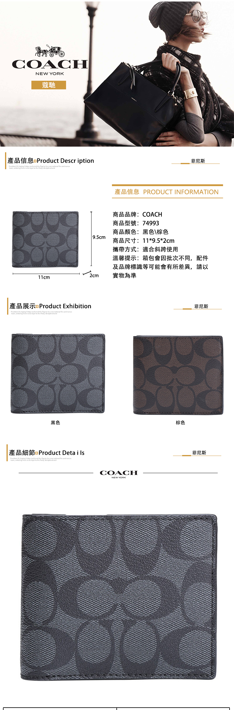 COACH男士C紋PVC短款對折錢包錢夾F74993 (預購)【 購物節優惠 ★ 菲尼斯 國際精品 3折起 】