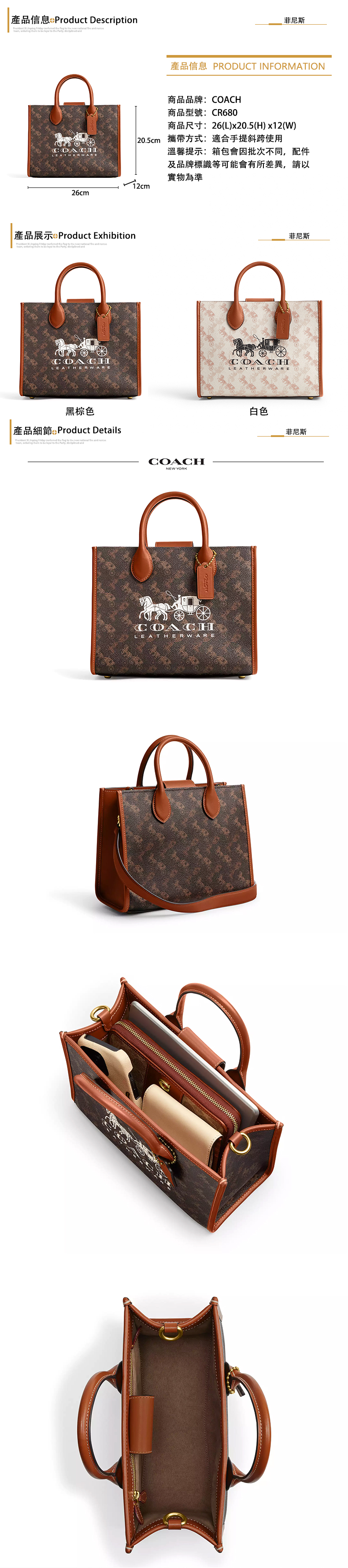 精選★COACH Ace26 Logo馬車印花 中號托特單肩斜跨斜背包 手提包 CR680~【購物節優惠★菲尼斯 國際精品↘3折起】