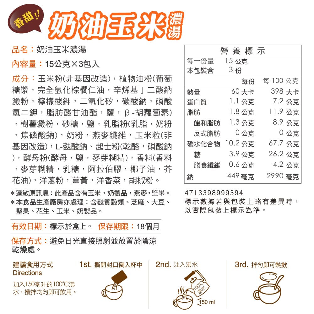 【馬玉山】奶油玉米濃湯(3入) 添加燕麥纖維/台灣製造 0