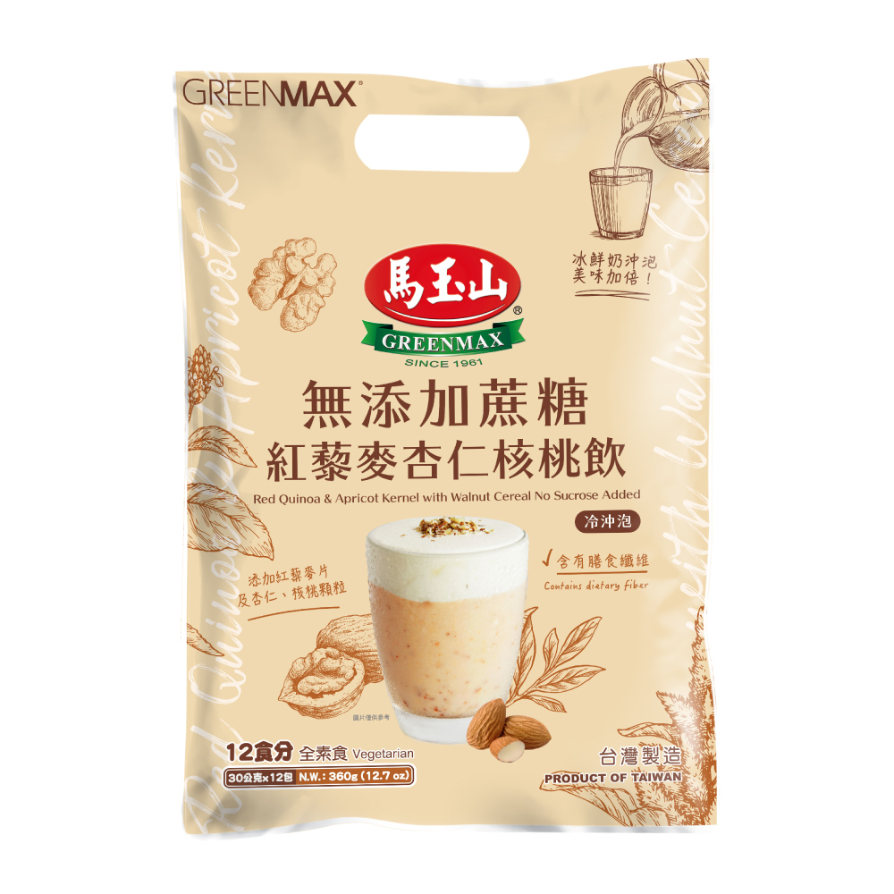 6. 3入分享組【馬玉山】無添加蔗糖紅藜麥杏仁核桃飲(12入) 冷泡/沖泡/穀粉/含膳食纖維/全素食