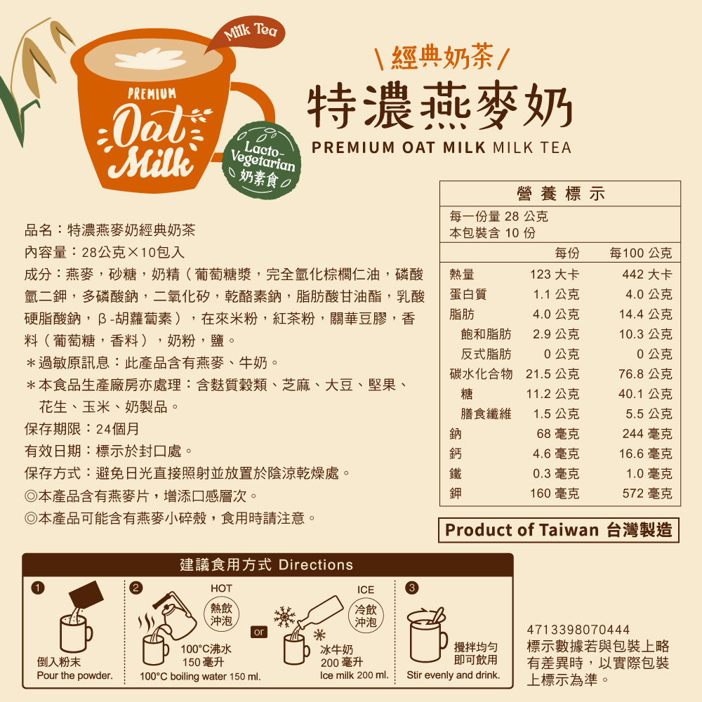 【馬玉山】特濃燕麥奶經典奶茶(10入) 濃郁香醇口感/口感滑順濃稠/奶素食/台灣製造 0