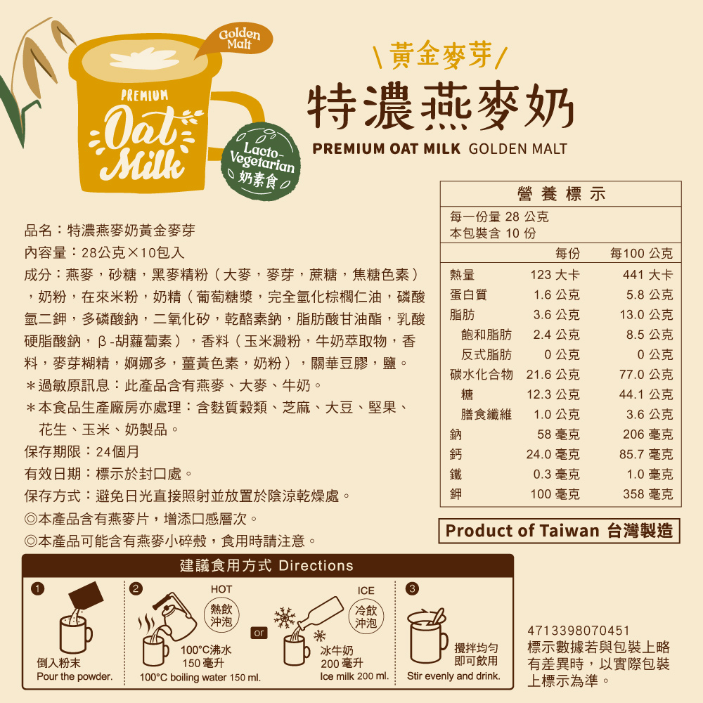 【馬玉山】特濃燕麥奶黃金麥芽(10入) 濃郁香醇口感/口感滑順濃稠/奶素食/台灣製造 0