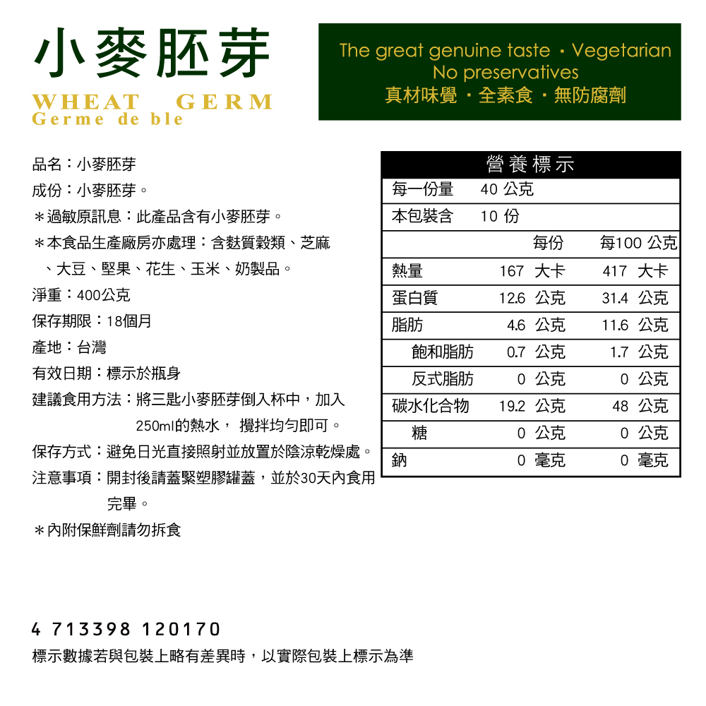 【馬玉山】小麥胚芽400g 沖泡/穀粉/無添加蔗糖/全素食/台灣製造 0