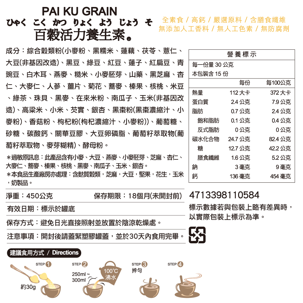 ★ 多榖多健康,營養好滋味 ★ 全素食、高鈣、含膳食纖維 ★ 無添加人工香料 ★ 纖美熱量 每份115大卡