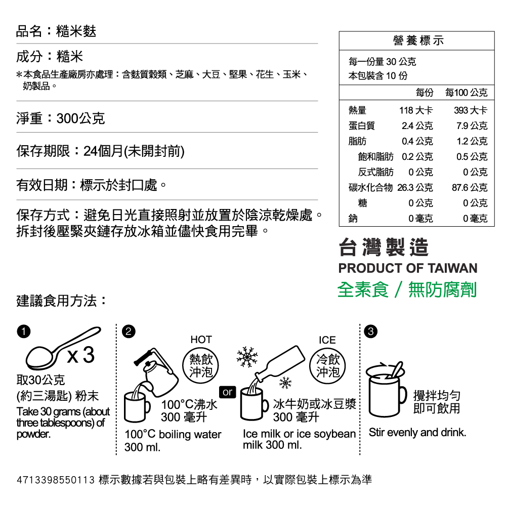 ★全素食 ★100%糙米研磨 ★無添加蔗糖 ★冷熱沖泡均可 ★台灣製造