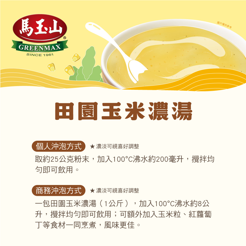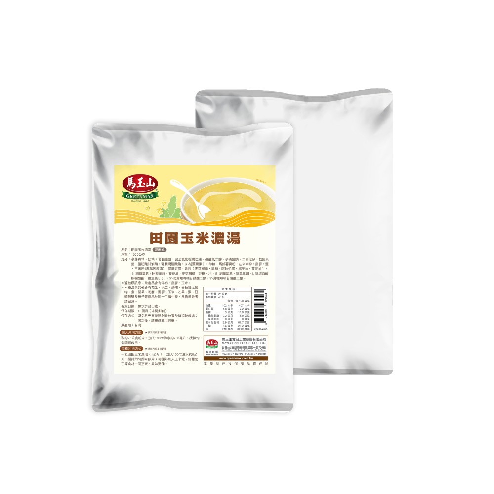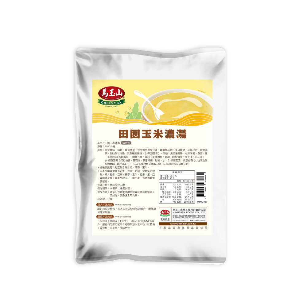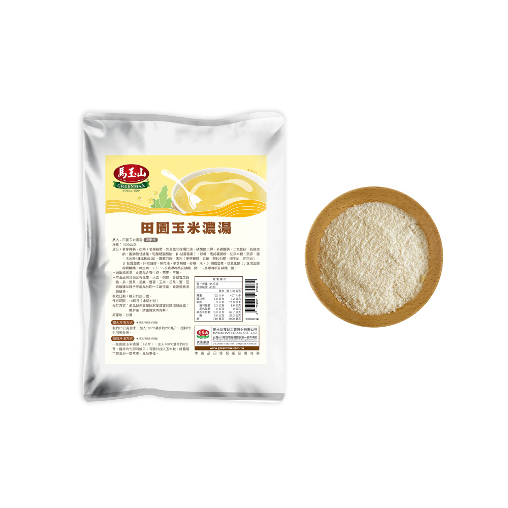 5. 【馬玉山】田園玉米濃湯1kg(包) 沖泡/大包裝/奶素食/台灣製造