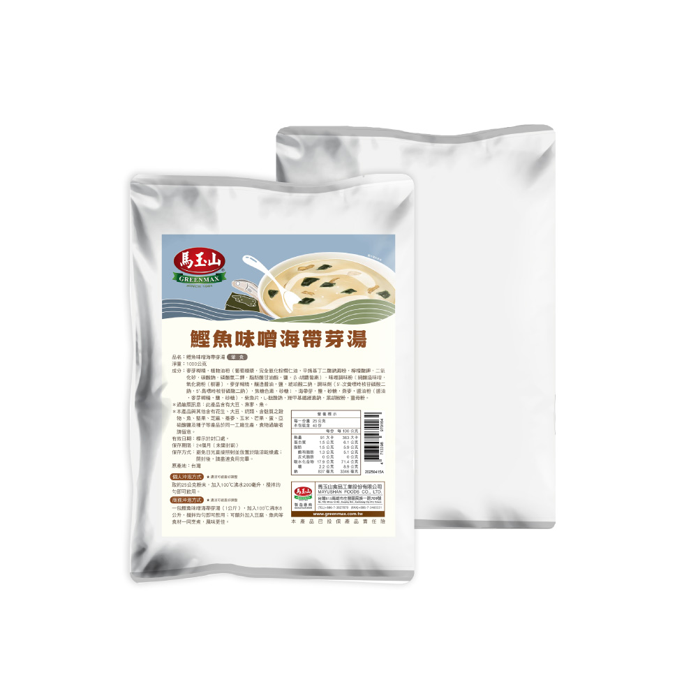 【馬玉山】鰹魚味噌海帶芽湯1kg(包) 沖泡/大包裝/台灣製造